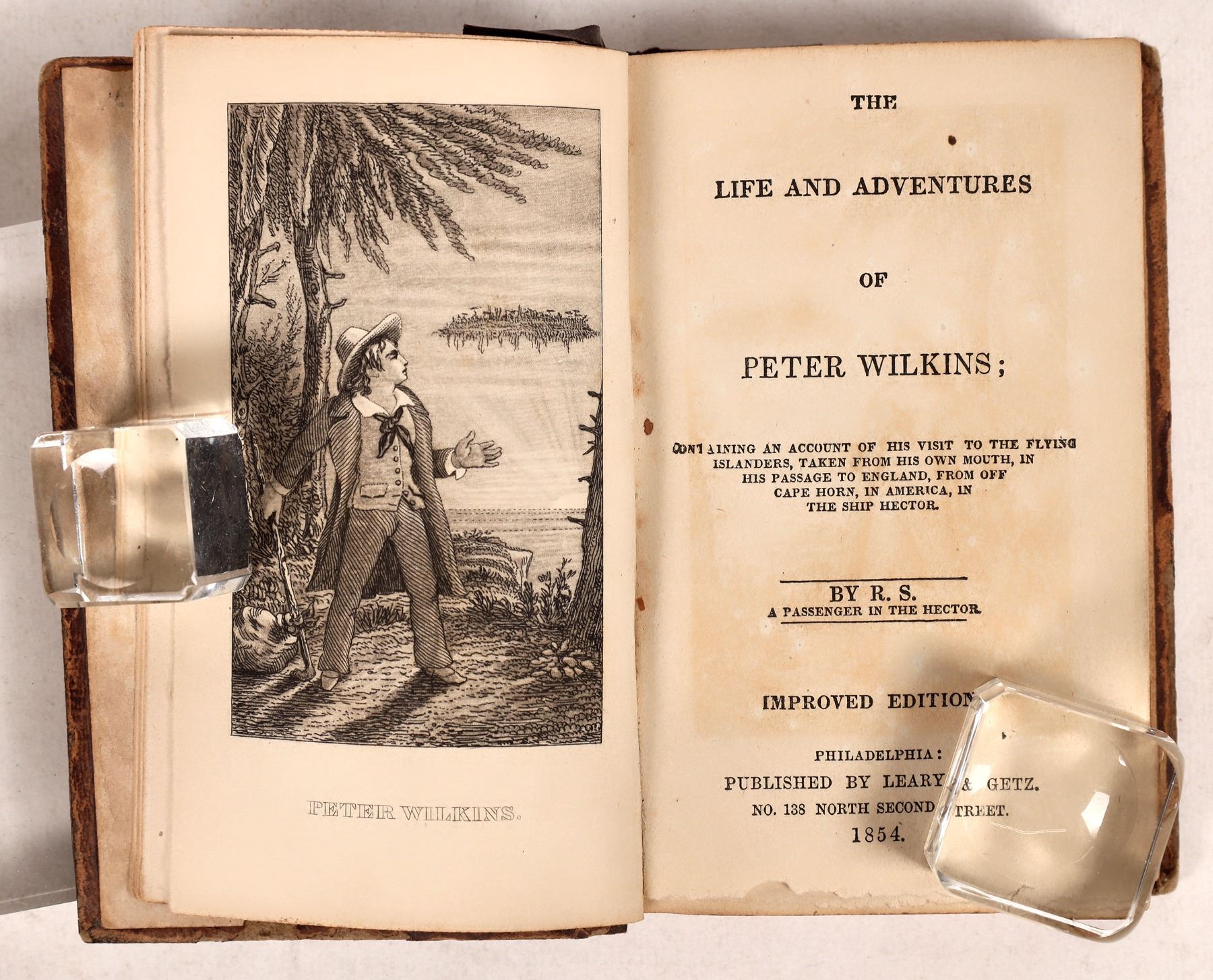 1854 Life & Adventures of Peter Wilkins by R. S. who is actually Robert Paltock, 1697-1767. Boards separating, some foxing, matching tape over spine. Edited from original version. 5x3.25". [