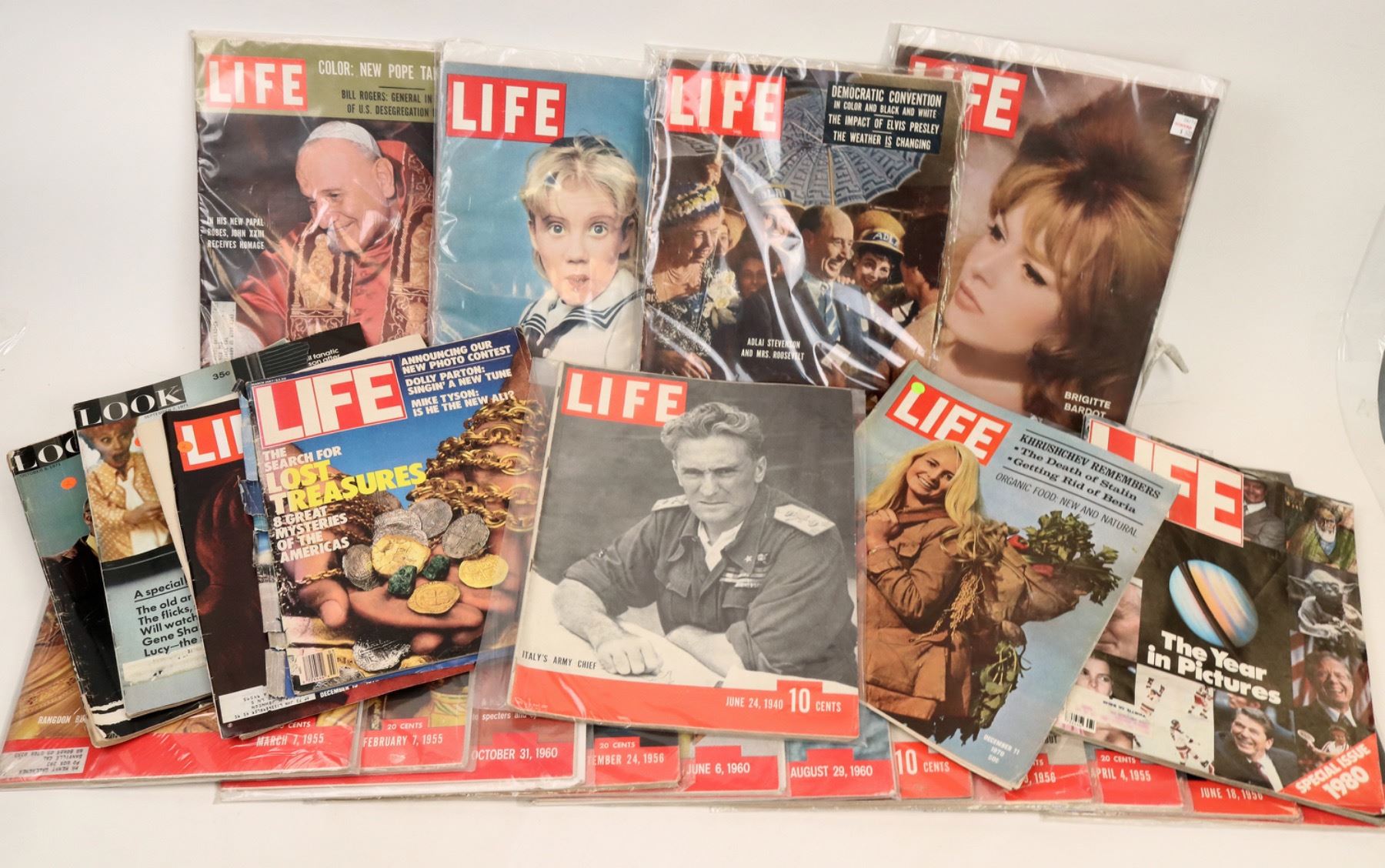 Life & Look magazines, beginning in 1940 and on up to the 1970s. Both magazines were known for their celebrity covers. These include Pope John XXIII, Eleanor Roosevelt and Adlai Stevenson, Brigit Bardot and more. It's a great look back into history, when magazines were actually printed on paper. Please see photos for more details. [