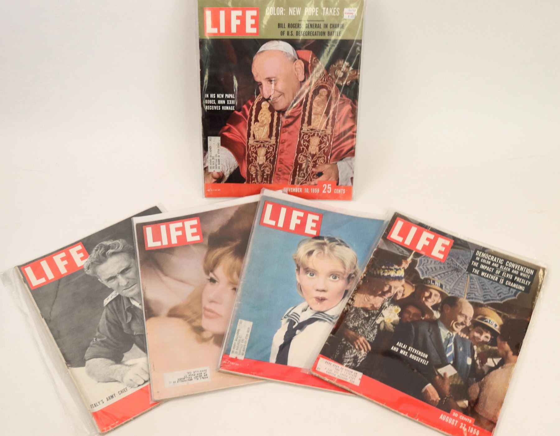 Life & Look magazines, beginning in 1940 and on up to the 1970s. Both magazines were known for their celebrity covers. These include Pope John XXIII, Eleanor Roosevelt and Adlai Stevenson, Brigit Bardot and more. It's a great look back into history, when magazines were actually printed on paper. Please see photos for more details.