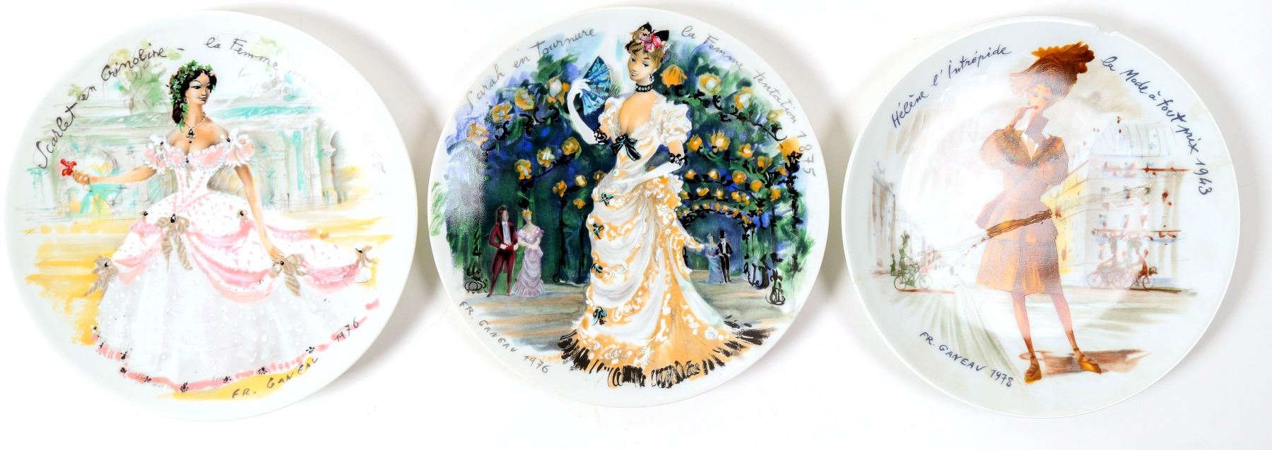 3 ladies on plates, 8.25", brown attired lady is broken and glued, 2 others ok State: City: Date: