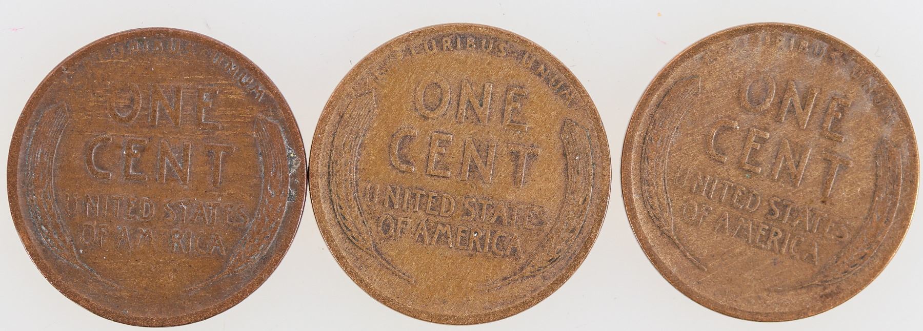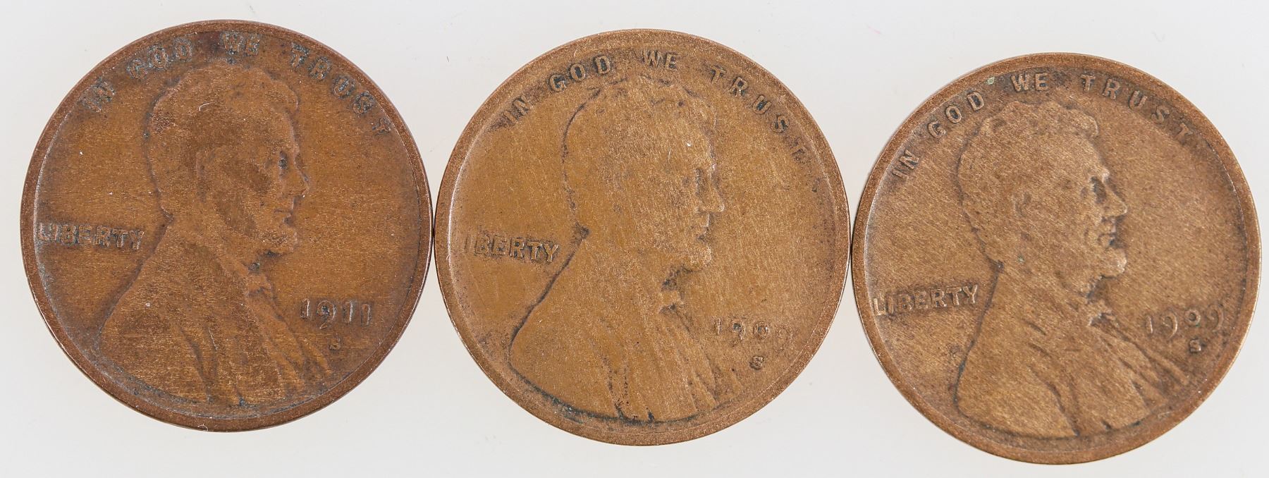 Three old Lincoln cents: 1909-S (G-VG); 1909-S (VG-F); 1911-S (VG-F).
