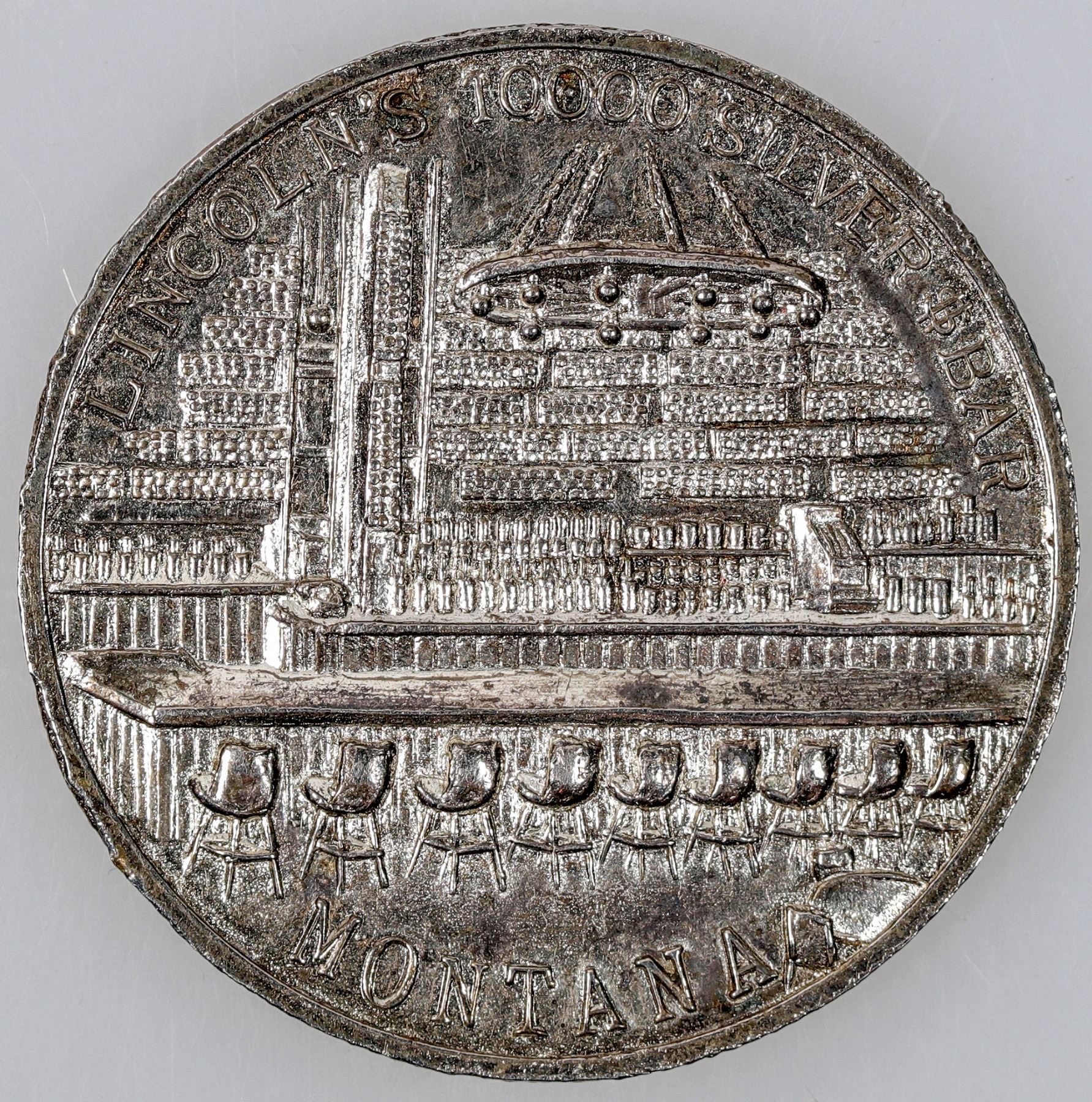 Obv.: 1921 Morgan Dollar facsimile; Rev.: Lincoln's 10000 Silver $ Bar / Montana. WM, rd., 51 mm.
