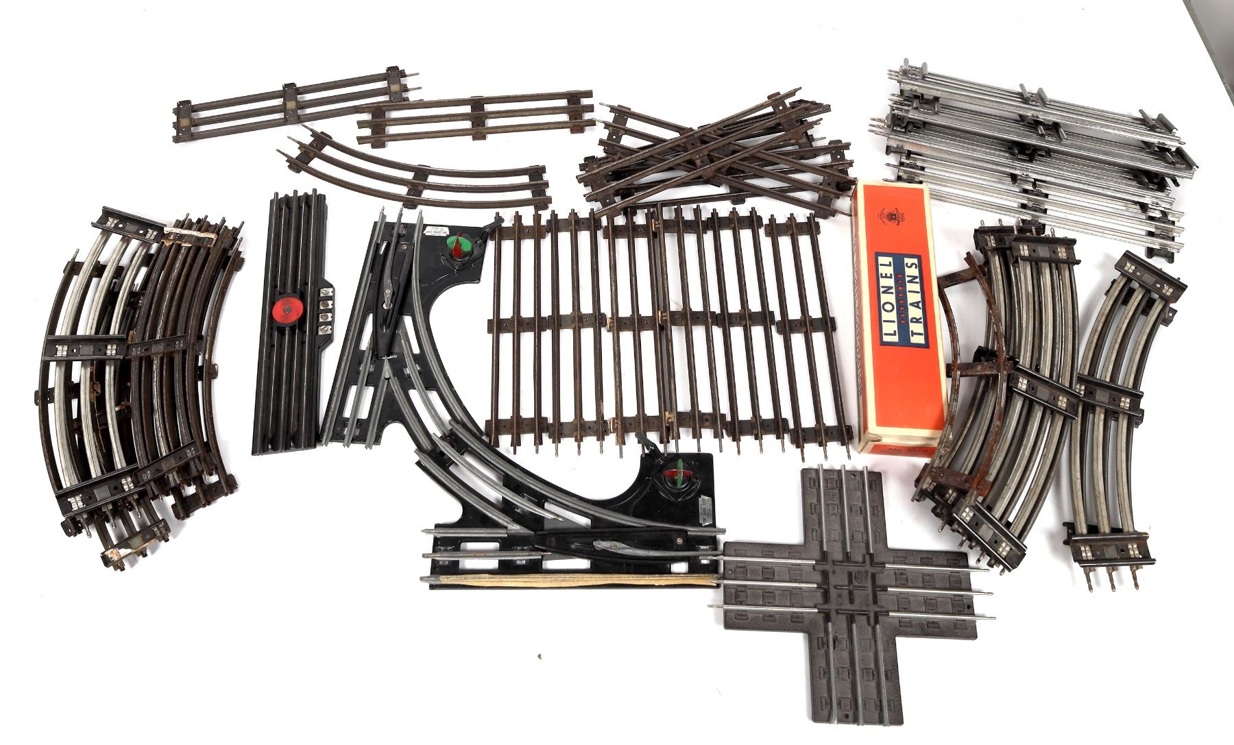 Lot of 41. "027" 13 straight and 8 curve (needs cleaning), "031" 7 straight clean and 8 curve either clean or like new. One "X" and one left and one right manual switch "027". One #6019 remote control track and one controlled track in Lionel box, very good condition.