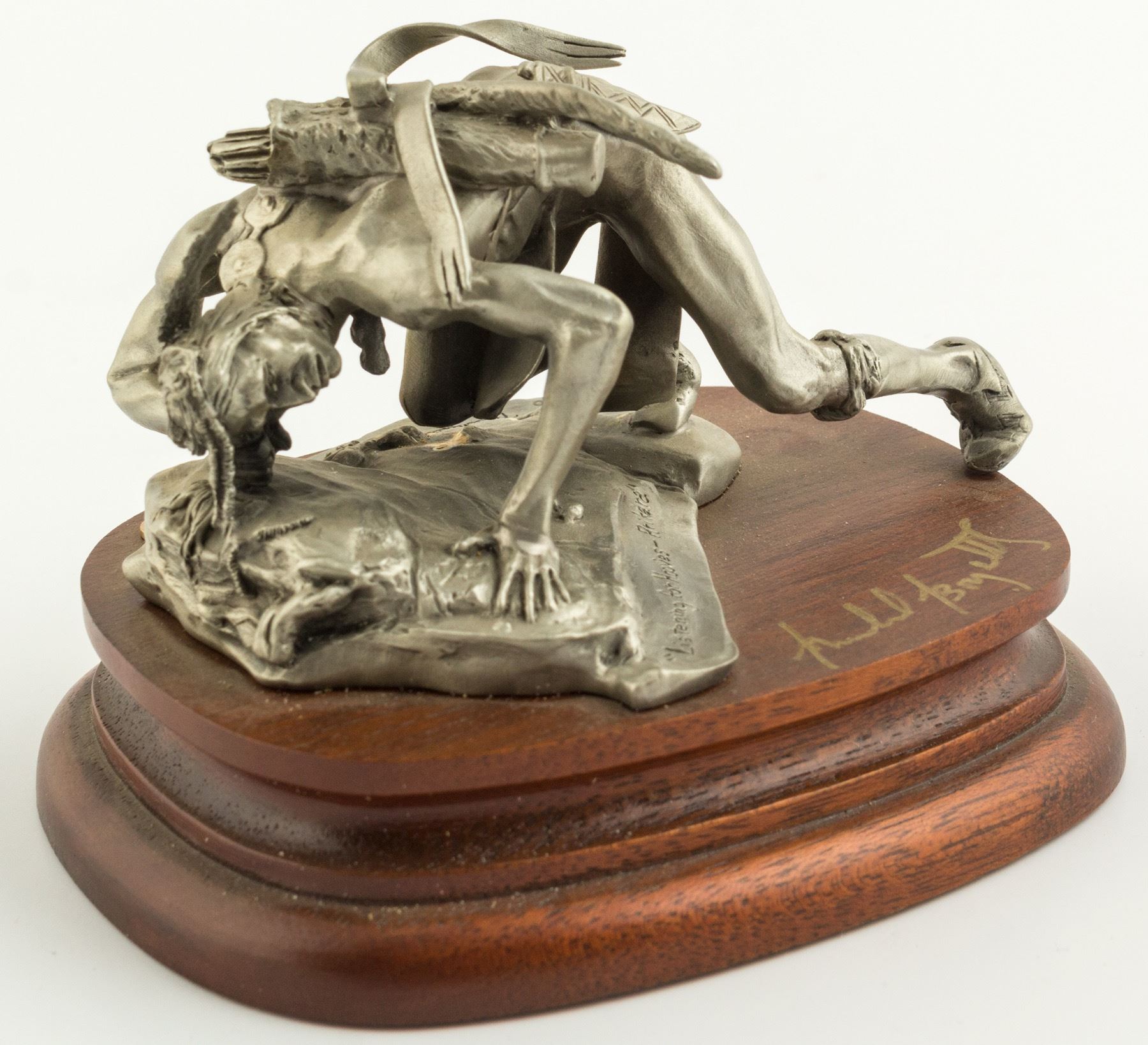 "Listening for Hooves-Arikara" by Boyett. Pewter sculpture, # 217 / 2500. State: Texas City: HWAC#: 48163 Date: 1981