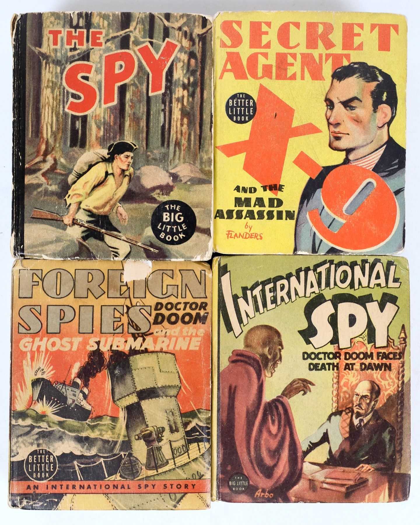 Four Little Big Books on the spy theme. Secret Agent X-9 and the Mad Assassin, The Spy, International Spy Doctor Doom Faces Death at Dawn, Foreign Spies Doctor Doom and the Ghost Submarine. Fair to good condition.