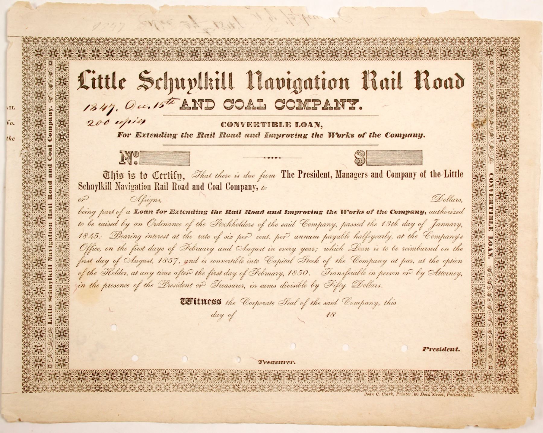Little Schuylkill Navigation Rail Road and Coal Loan Cert