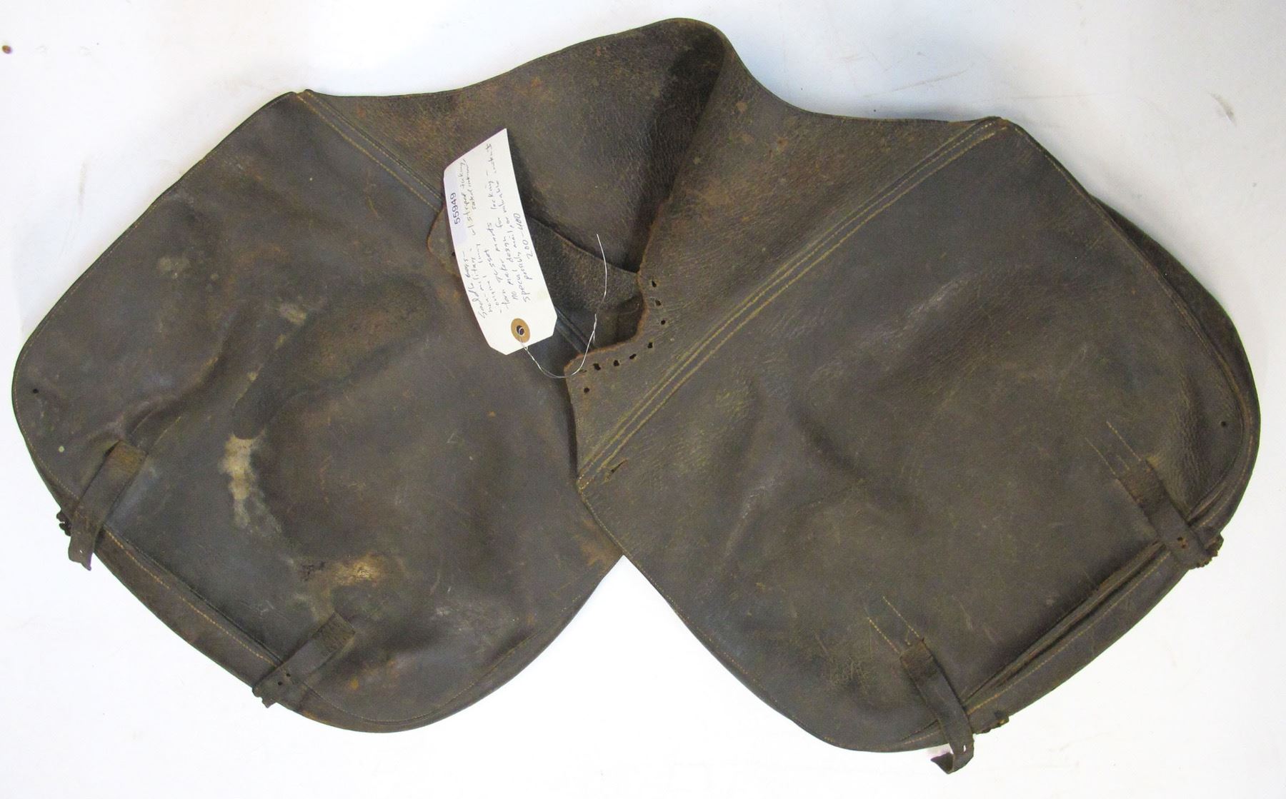 Original bag lining with striped ticking. Torn gusset, no maker marks. Has a special design for locking, similar to locking sample bags from mining. Possibly for mail or valuable contents Date: City: State: HWAC# 55949