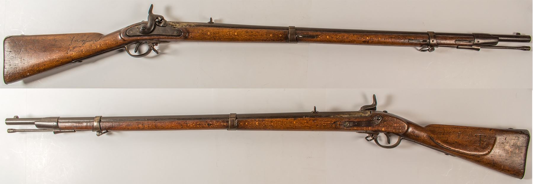 Hand engraved into the stock is "Sanford"; presumably Mr. Sanford carried this rifle into battle. State: City: Date: ID# 49640