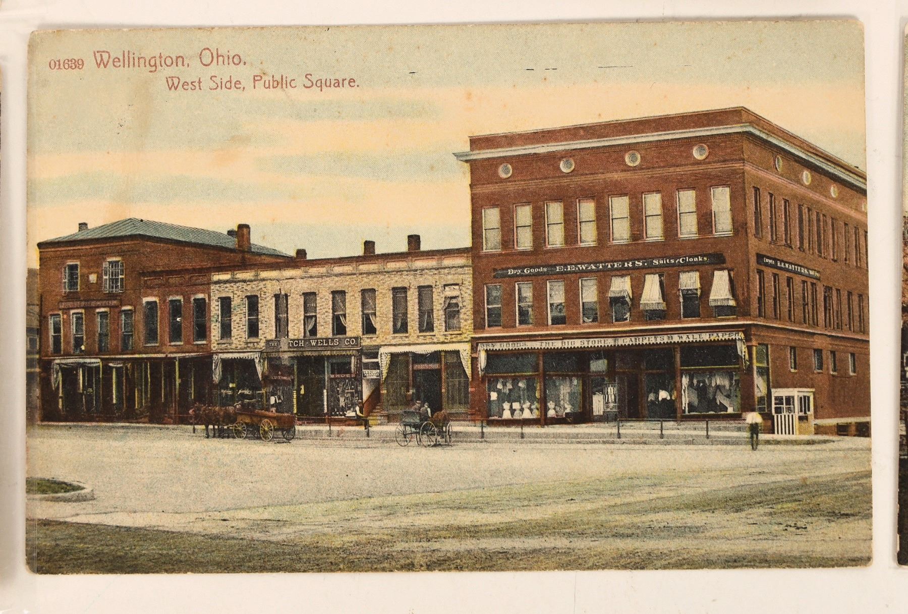 9 Wellington street scenes. Hotel de Foote, Prospect Street, Francis Statuary, public square, W. Main Street, Niagara Street RPC etc.[ Lorain County Ohio