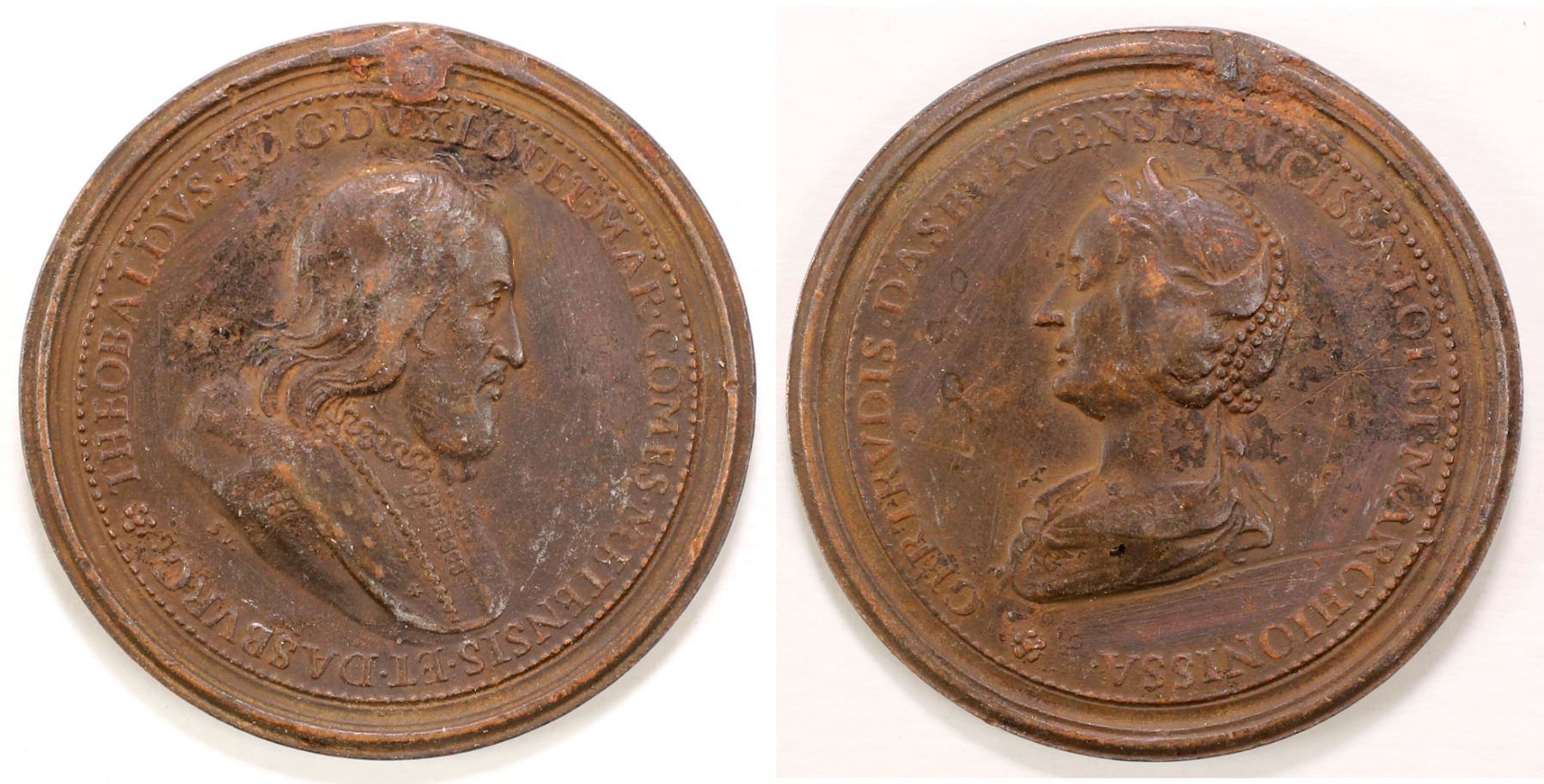 (1213-1220) // His wife Gertrude, only child and heir of Albert II, count of Dagsburg and Metz. Bronze, 47mm, removed hanger, Toned EF.