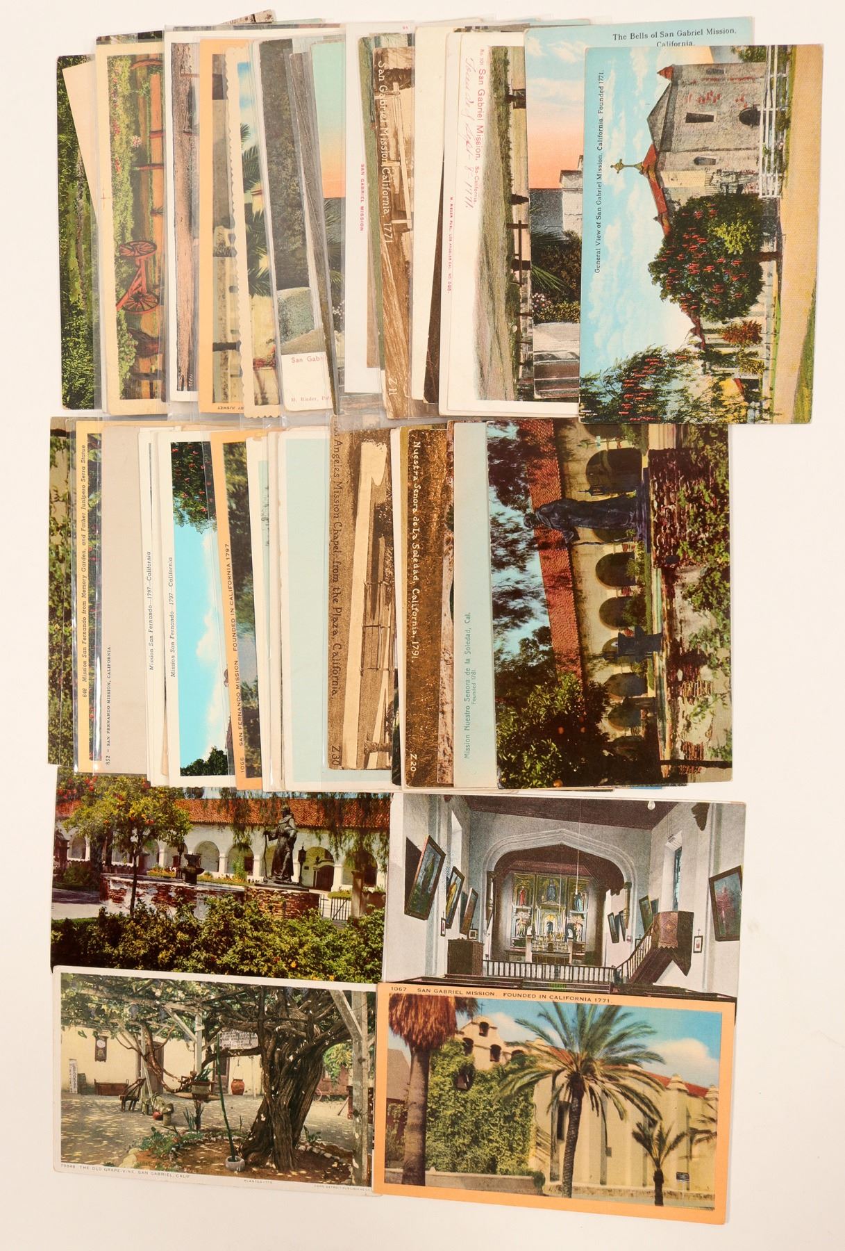Approx 60 postcards from Los Angeles are missions-Los Angeles, San Fernando, San Bernardino, Soledad, La Purisma Salvatore Falcone Collection