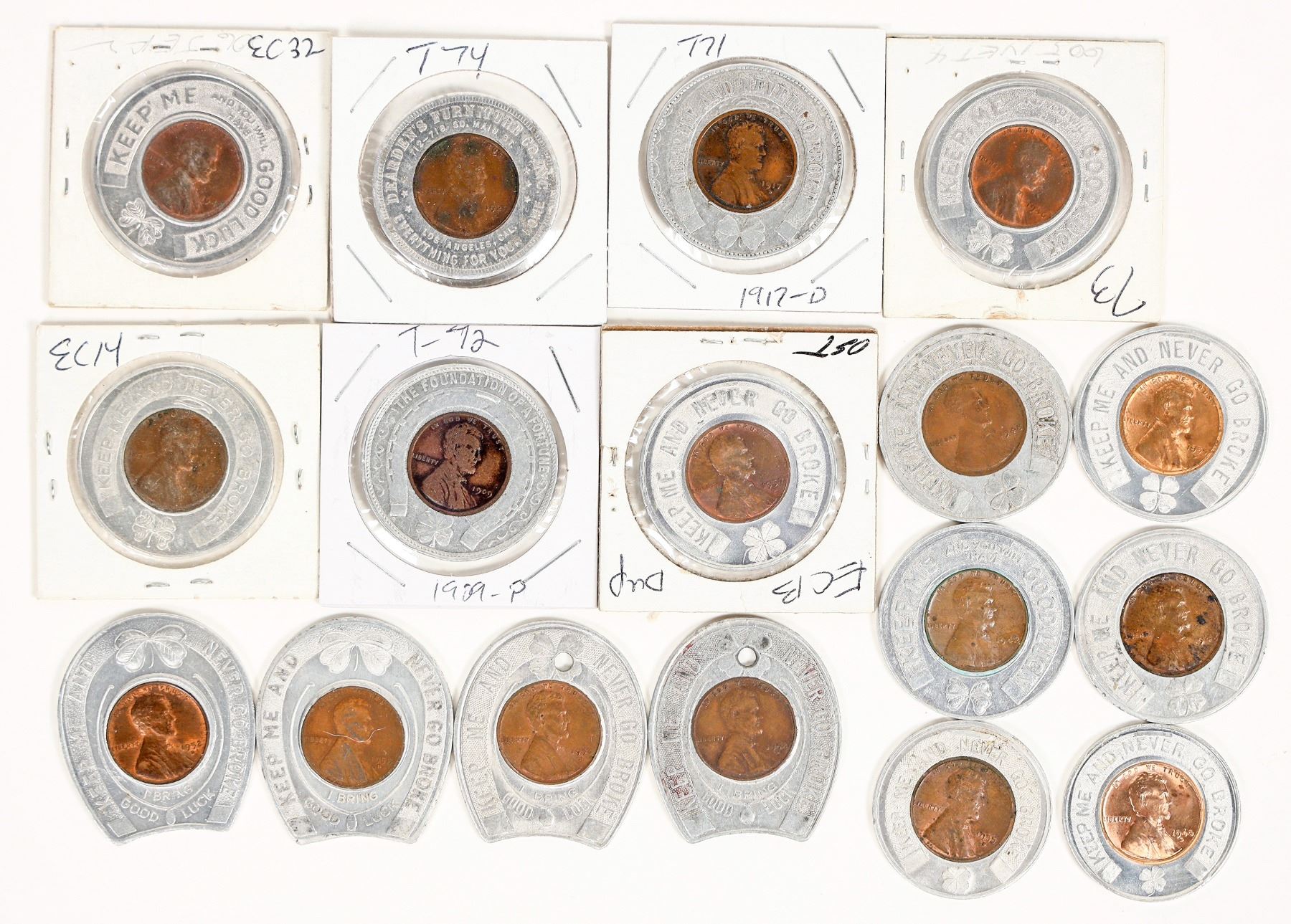 Seventeen encased pennies from the City of Angels: Marks Jewelers; Thomas L. Rich; Dearden's Furniture; Beckel's Luggage; Harvard Shoes; Coast Carloading; Wilt's Credit Jewelers; Insulated Roofing; Times Furniture Company; Irwin A. Holcomb.