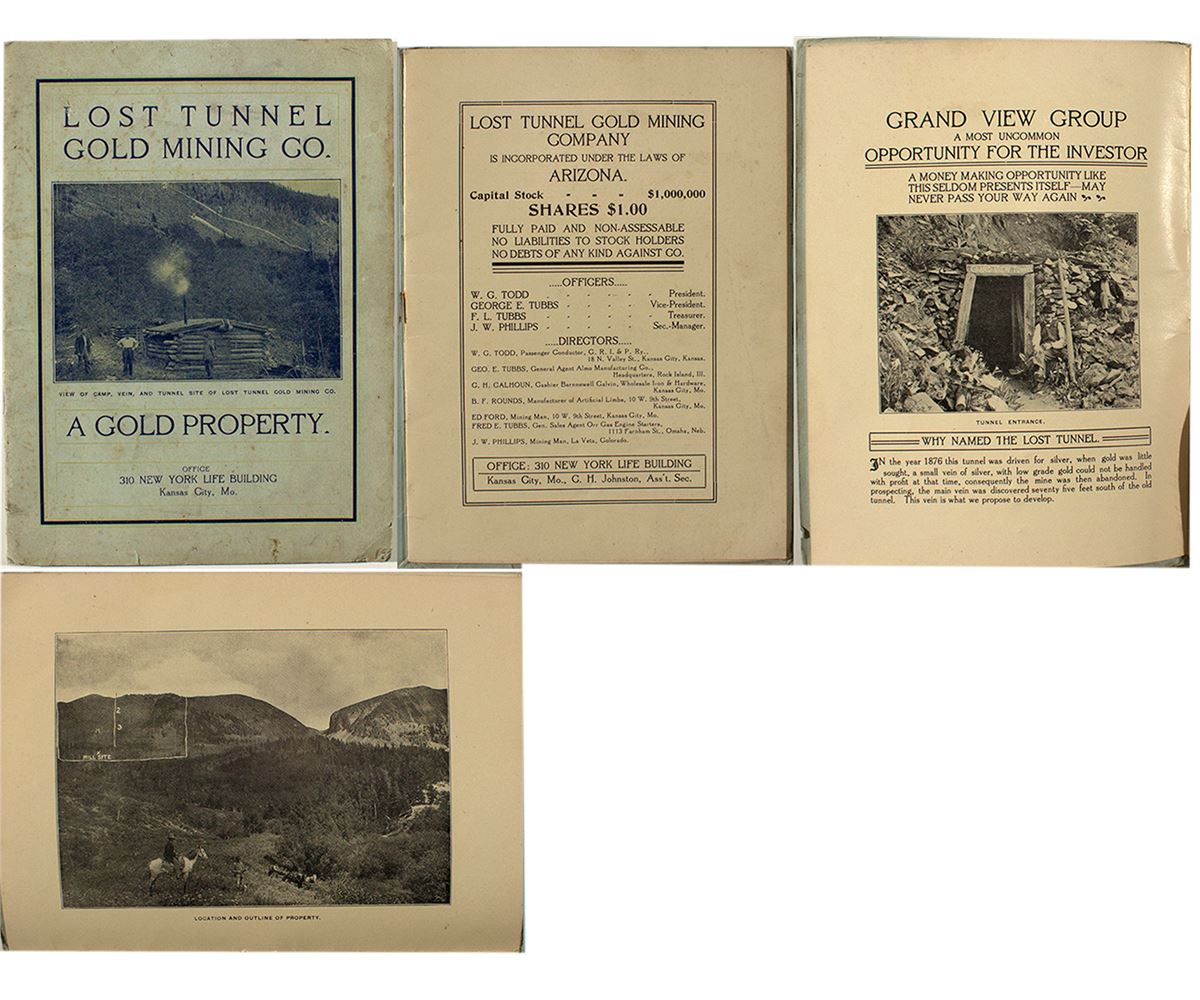 Why named the Lost Tunnel? In the year 1876 this tunnel was driven for silver, when gold was little sought...consequently the mine was then abandoned. On May 14, 1908 the Lost Tunnel Gold Mining Company Commences Operation under the superintendent of J. W. Phillips and E.D. Ford. 20 pages. 8 x 6". Five photographs with two of the old property.
