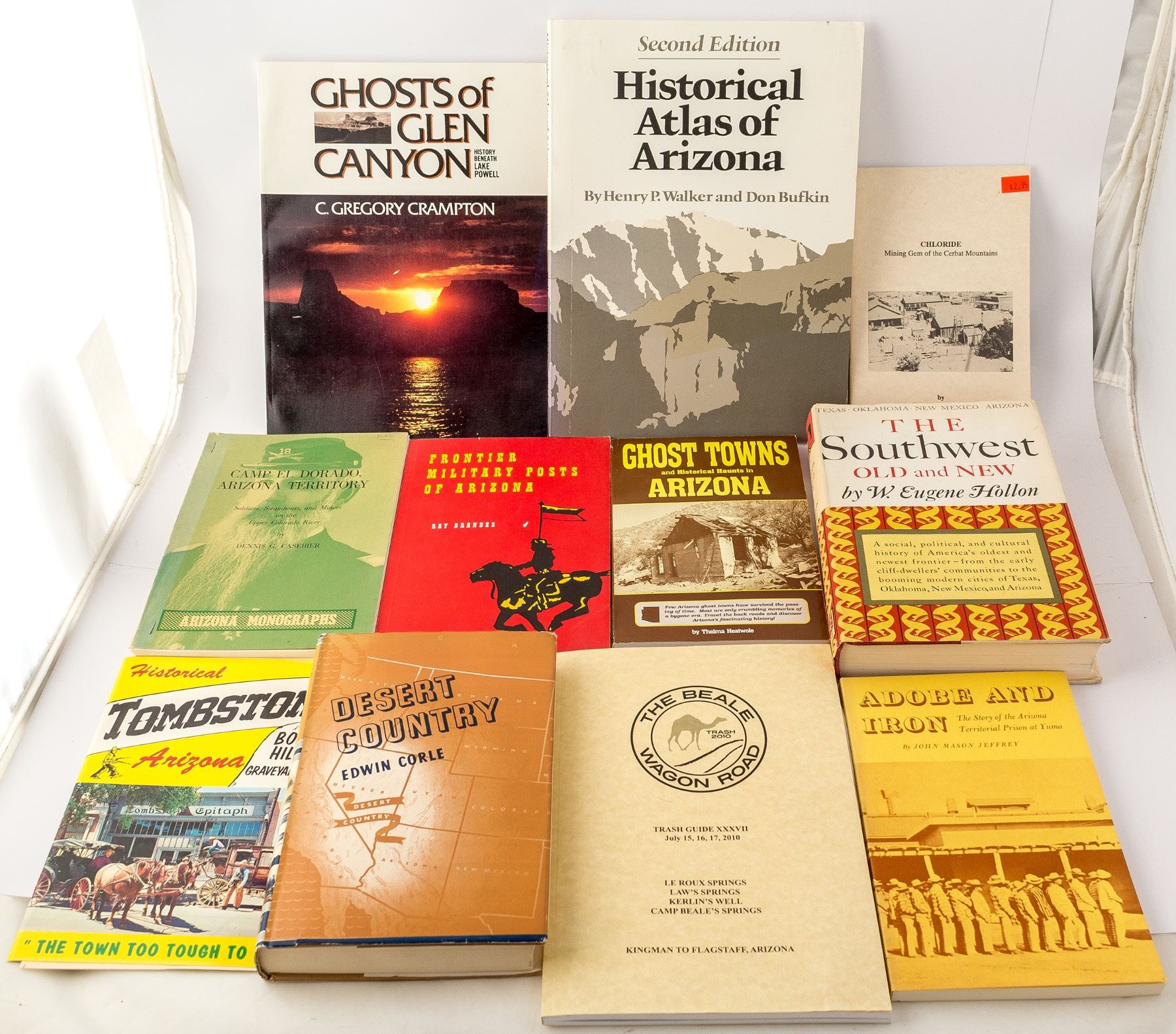 Lot of 12 books on Arizona/Southwest Ghost Towns: 1) The Southwest: Old and New. 2) Adobe and Iron: The Story of the Arizona Territorial Prison at Yuma. 3) Chloride: Mining Gem of the Cerbat Mountains. 4) Ghost Towns and Historical Haunts in Arizona. 5) Desert Country. 6) Historical Atlas of Arizona: Second Edition. 7) Ghosts of Glen Canyon: History Beneath Lake Powell. 8) Historical Tombstone Arizona - Boothill Graveyard. 9) Camp El Dorado, Arizona Territory: Soldiers, Steamboats, and Miners on the Upper Colorado River. 10) The Beale Wagon Road Trash Guide, 2010. 11) Frontier Military Posts of Arizona. 12) Railroads of Arizona: Volume 1. State: City: HWAC#: 48263 Date: