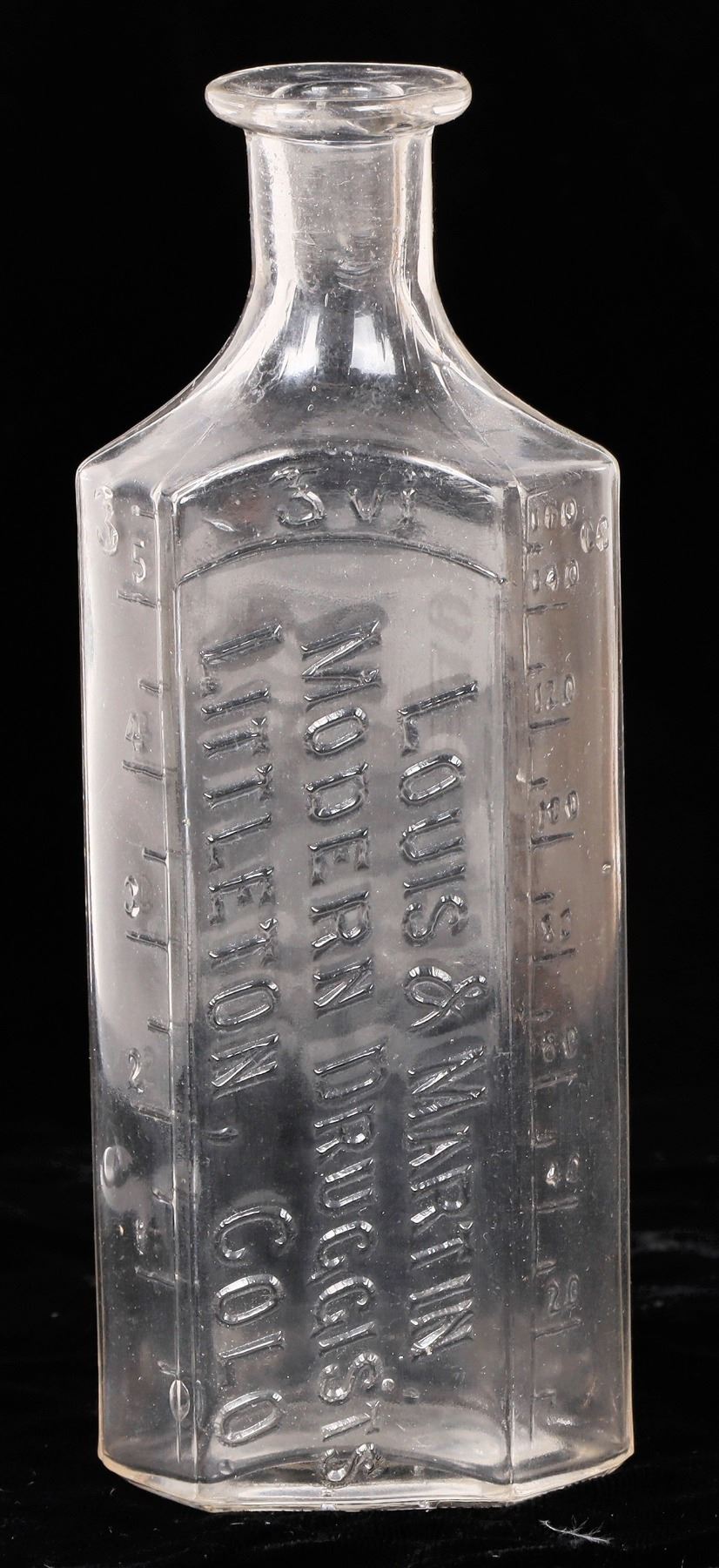Embossed Louis & Martin/Modern Druggists/Littleton, Colo. 6.25". No apparent chips or cracks.