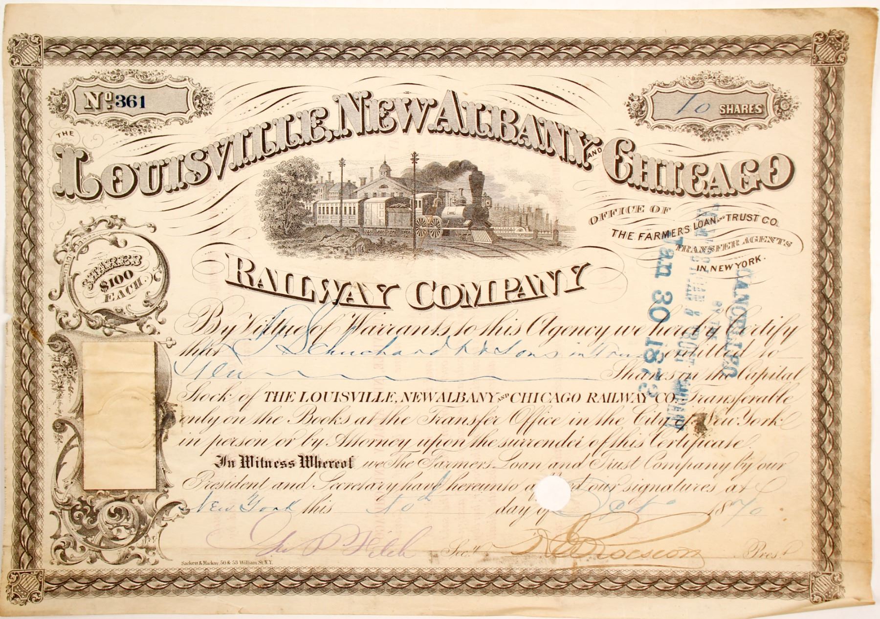 Rare I/C #361 10 shares 1870 signed by President illegible. 1" tear and creases. Prag Collection. State: City: Date: 1870 HWAC# 84933