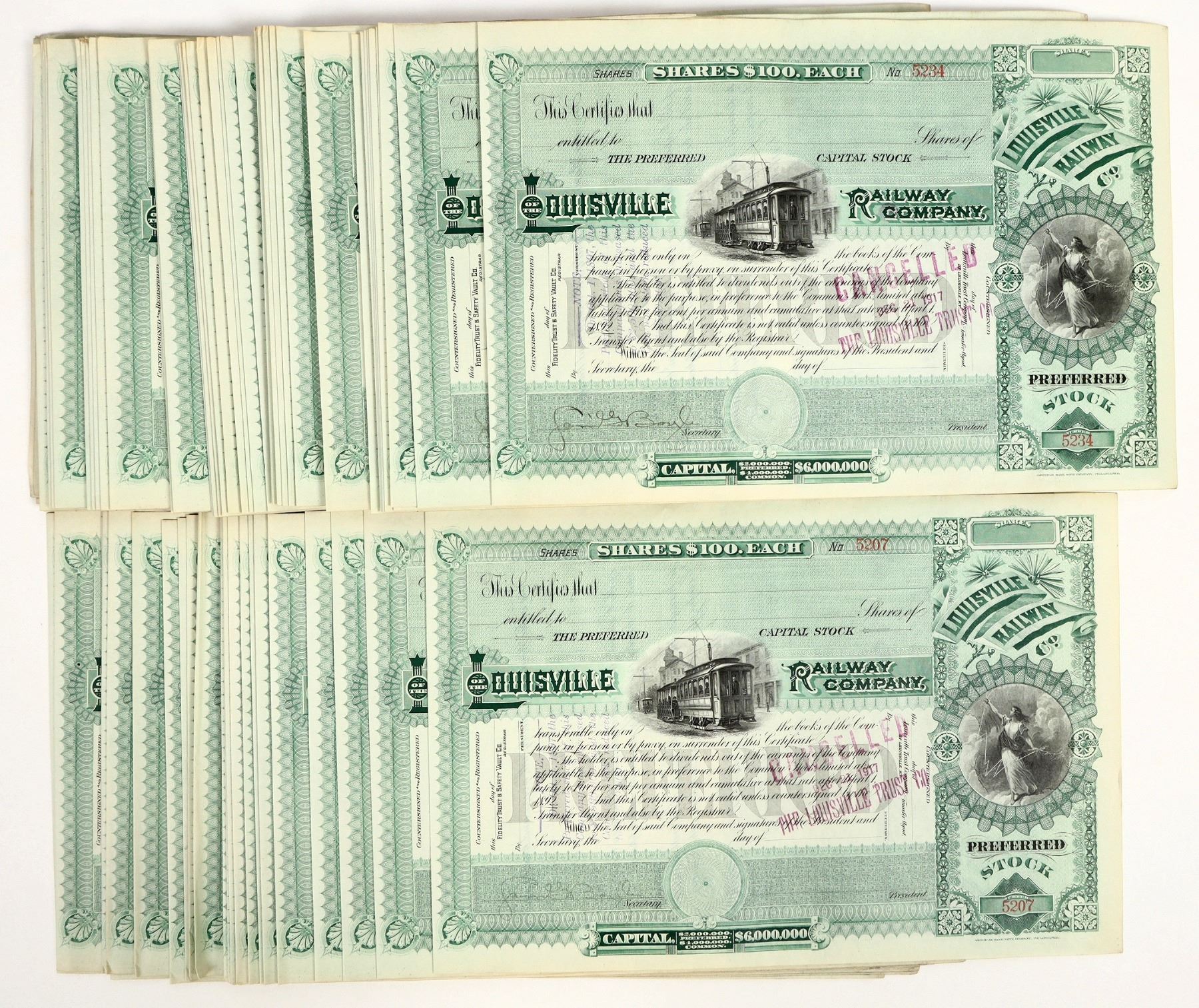 50+. U/C. No dateline. EF cond. Louisville Railway Co., w/receipt. American BNC. printer. Great vignettes.