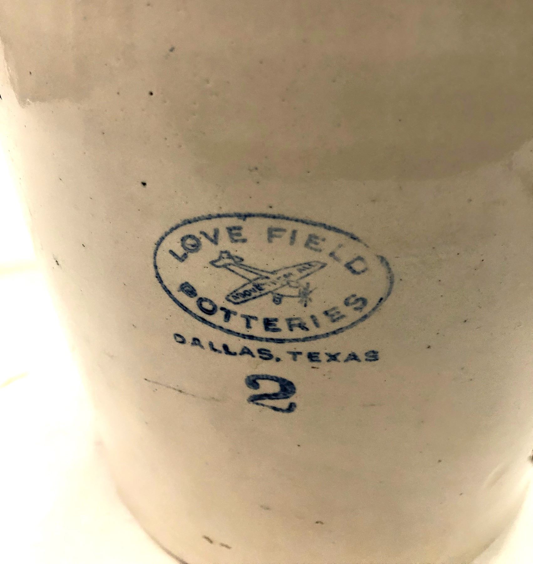 Love Field/Potteries/Dallas, Texas/2. 12x7.75". Missing handle, .25" and 1.25" lip cracks, .75" and 1.25" side chips.
