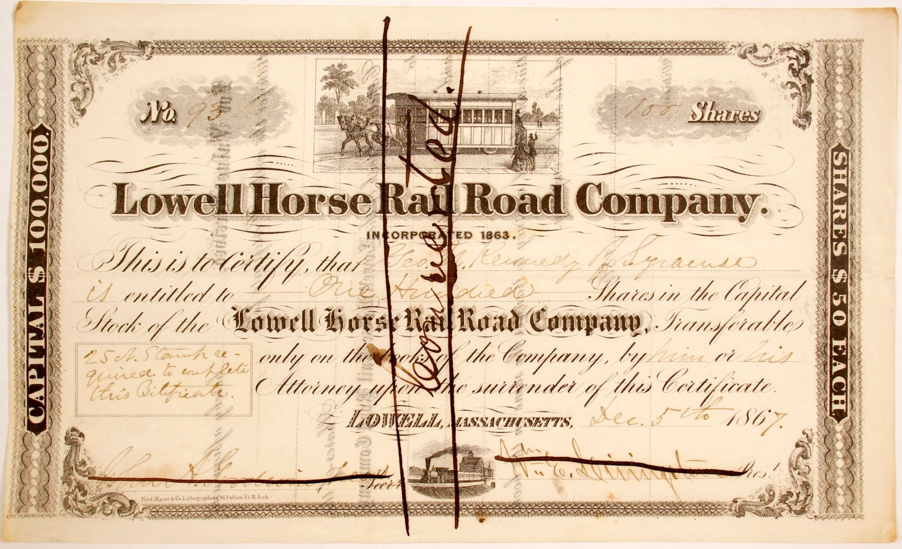 I/C #93 Geo Syracuse 100 shares 1867 signed by President W Serrington. Traction vignette. Prag Collection. State: City: Date: 1867 HWAC# 84929