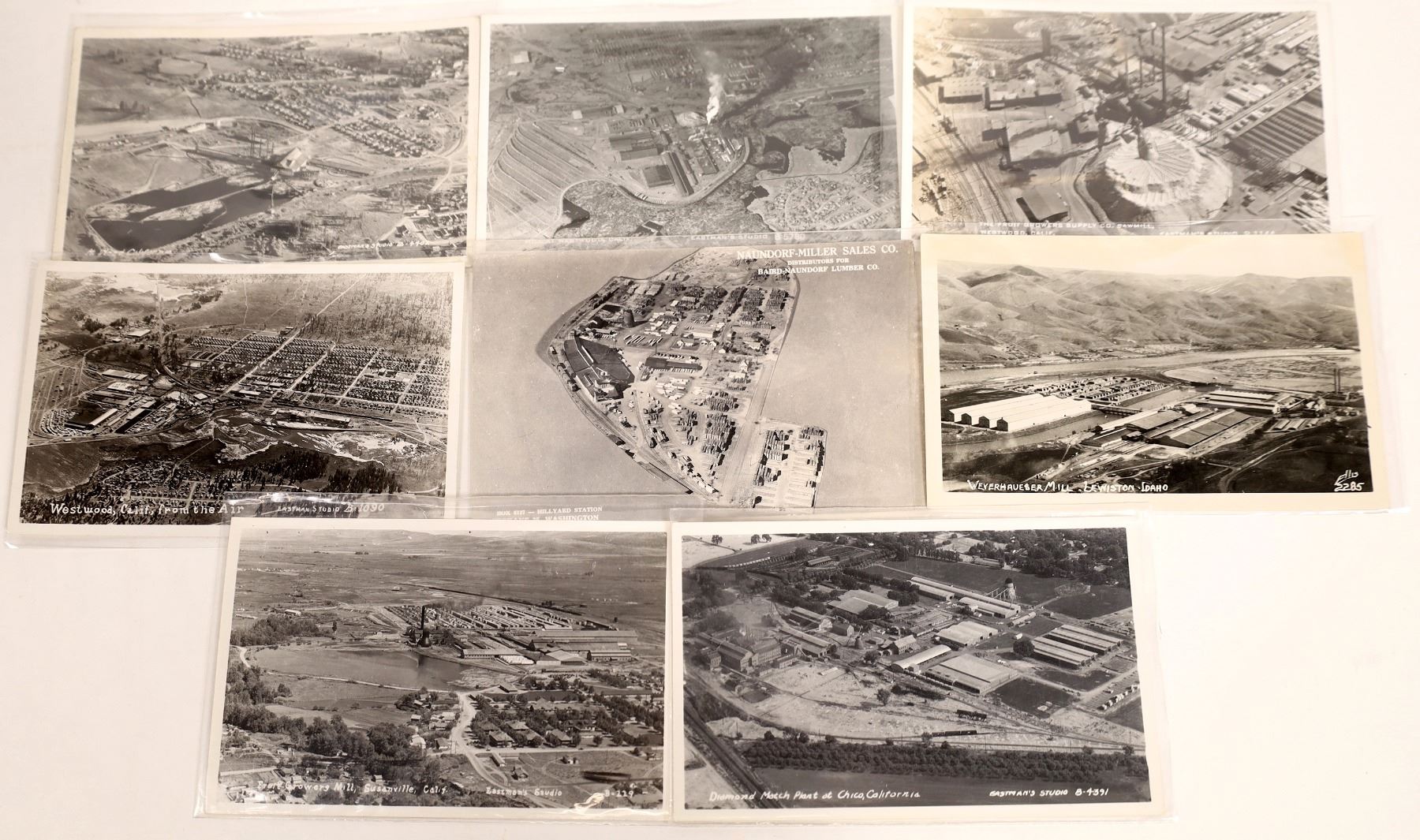 Lot of 8 Lumber Mill postcard. All 8 are overhead shots of the mills. There are 8 RPCs, 2 EKC, 4 Kodak, and two unknown. Most of lot includes locations in California: Weed, Westwood, Susanville, and Chico.