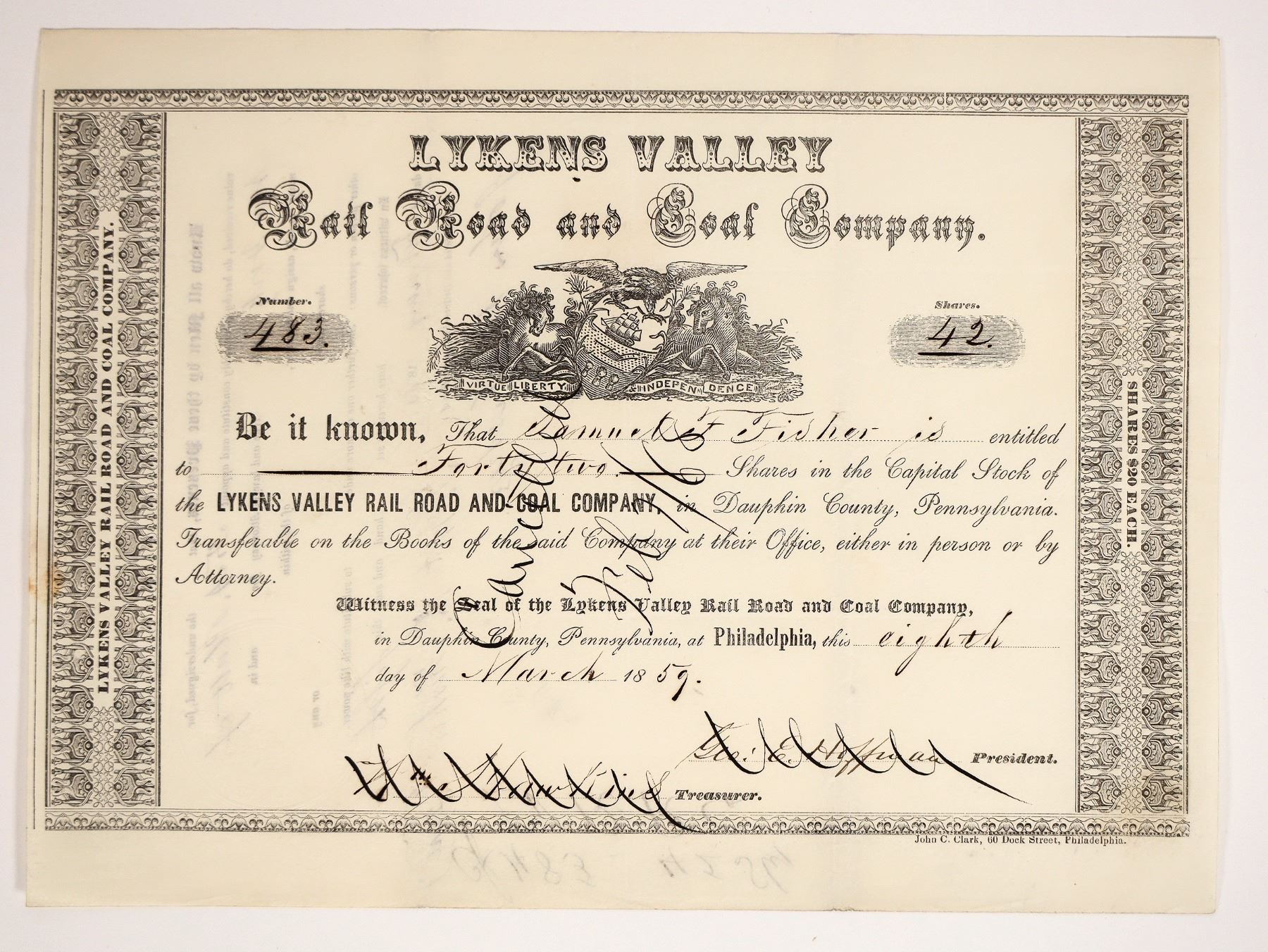 Issued 1859. On New Years Day 1877, the prosperous community of Lykens, Pennsylvania was brought to its knees by a devastating mine fire. The disaster changed the lives of thousands of Dauphin County residents forever. A small number of workers entered the burning mine to assist in efforts to put the fire out, but the vast majority of the 800 miners and workers attached to the mines and related industries in Bear Gap were thrown out of work. The situation looked dire ñ damage was estimated in excess of $1 million and fierce debate raged over whether the Lykens colliery would ever reopen.