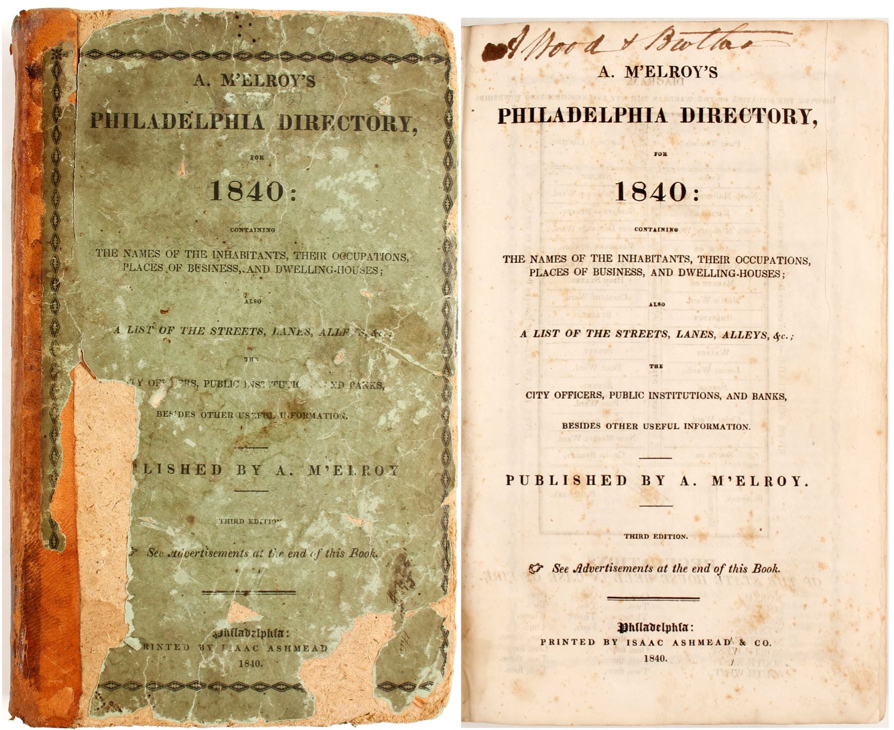 M’Elroy’s Philadelphia Directory for 1840, published by A. M’Elroy, Philadelphia, printed by Isaac Ashmead & Co. 1840._x000D_