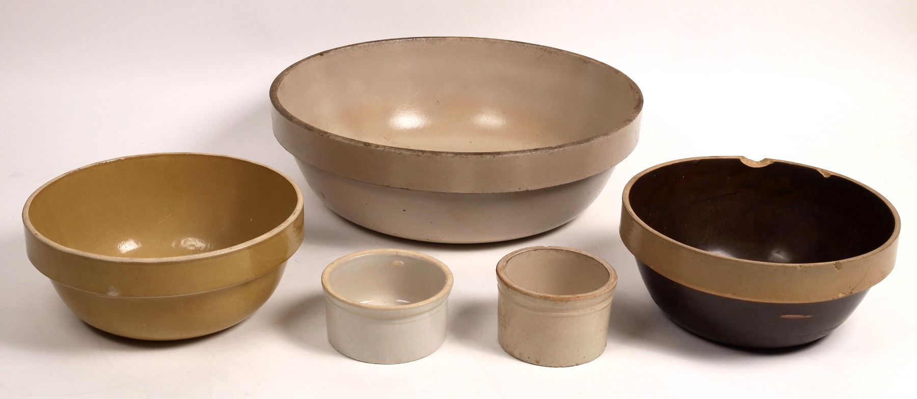 5 different from Macomb. Tan 3x4.5", a few chips. Whitish 2.5x5". 2 tone 4.5x10.5", a few chips, largest 1.5". Mustard tone 4.5x10.5", side ding. Beige 5.5x17.25"