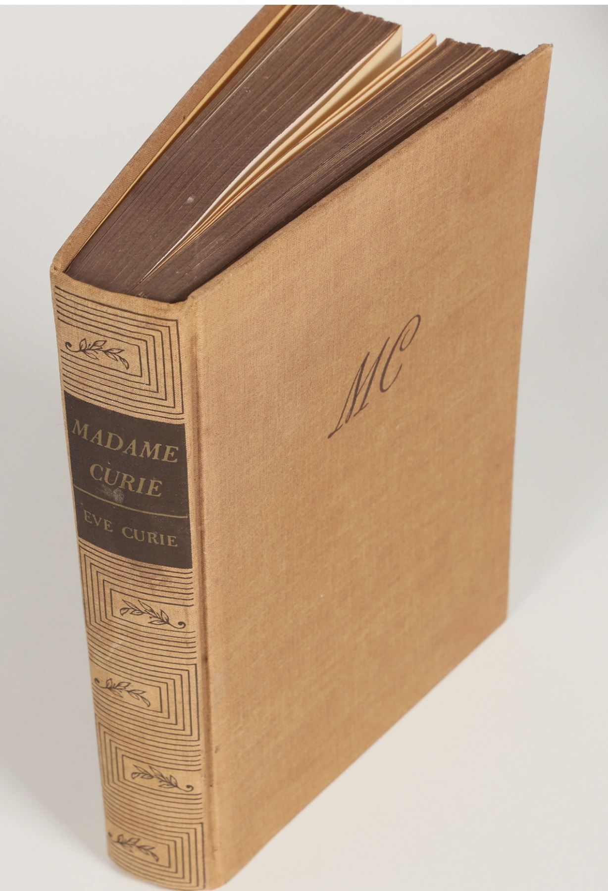 A first edition copy of 'Madame Curie', a 1937 biography of scientist Marie Curie written by her daughter Eve Curie. Curie, a Polish-French physicist and chemist, is known for her pioneering research on radioactivity and for discovering the elements polonium and radium. She is one of the most widely celebrated female scientists of all time. Book is in good condition w/ deckled edges and numerous photographs; see photos.