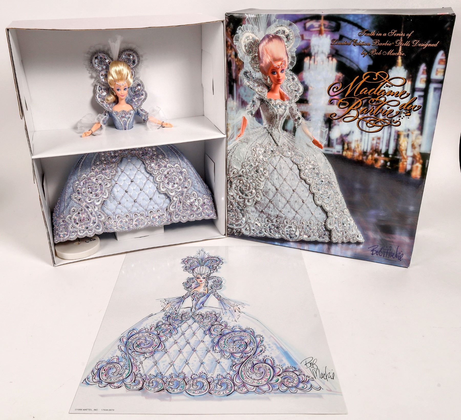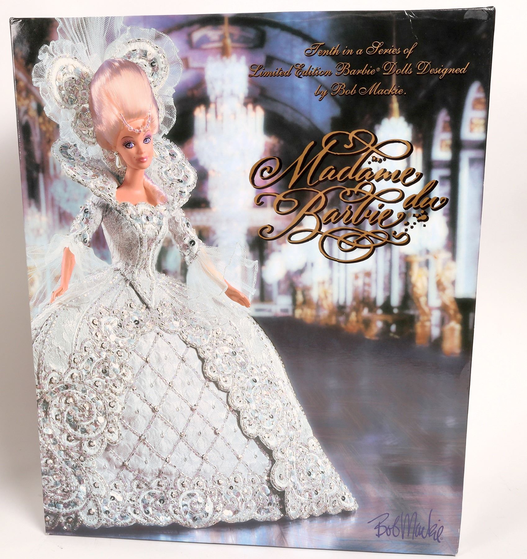 New in box Madame du Barbie by Bob Mackie. Tenth in a series of limited edition Barbie dolls designed by Bob Mackie. Includes reproduction of Mackie's original signed fashion illustration. Mattel #17934.