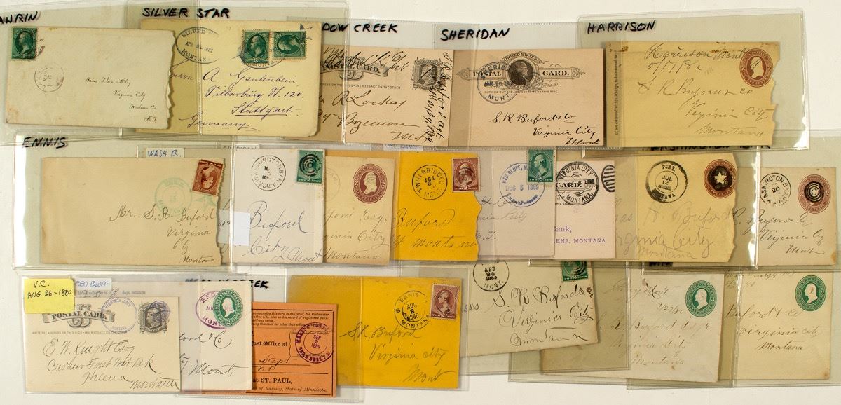 Lot of 18. Two each of Virginia City, Ennis, Washington Bar, Sheridan, Pony, Red Bluff & Twin Bridges. One each of Silver Star, Harrison, Lyon, and Laurin. Manuscripts include Twin Bridges, Harrison, Pony, Meadow Creek. City: State: Montana Date: 1870's to 1880's ID: 37068