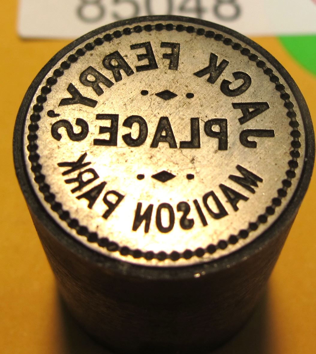 1 token die self identified from Madison Park, WA. 24mm: Jack Ferrys Place. Northwest Territorial Mint Historical Token Die Collection State: Washington City: Madison Park Date: c1903-1950 HWAC# 85048