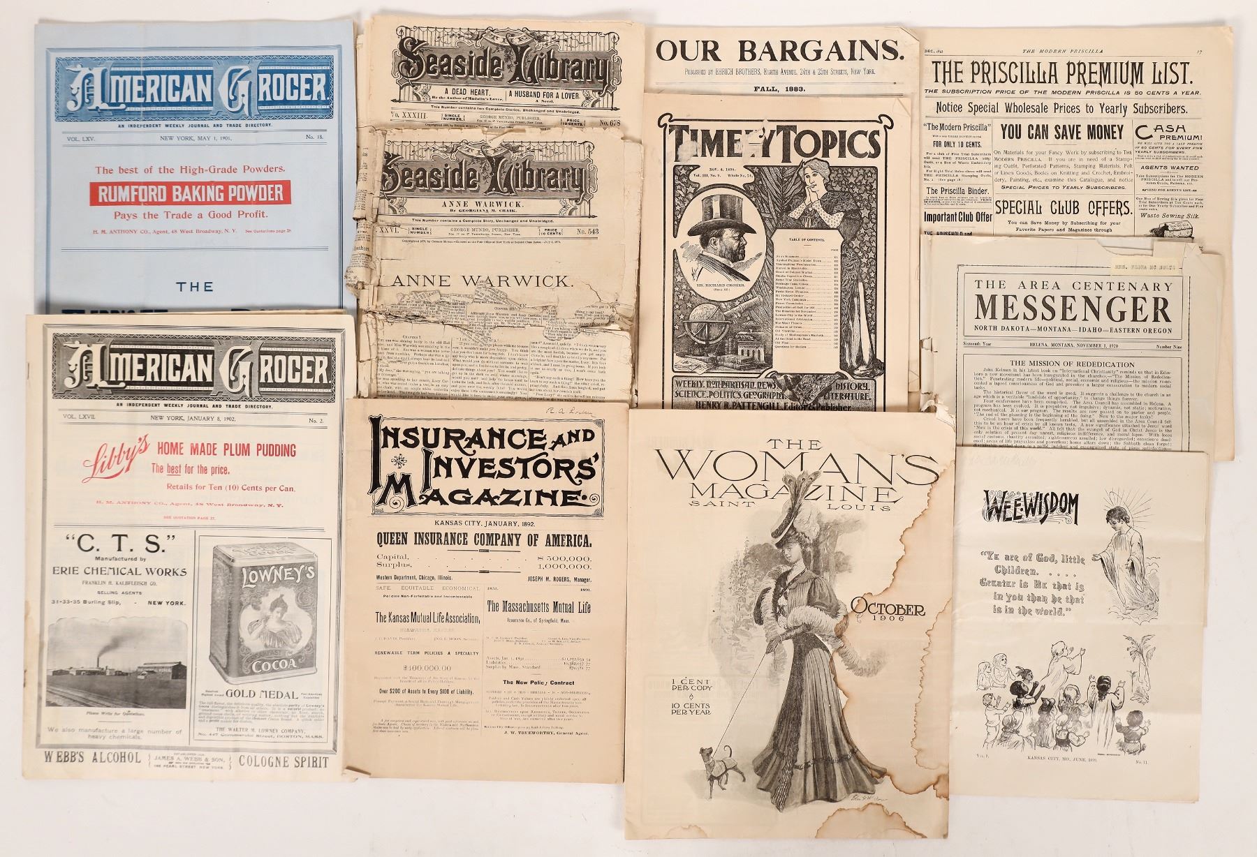 Magazines from the late 19th and early 20th centuries (10). Included are copies of a 1906 edition of The Woman's Magazine, an 1893 issue of The Priscilla Premium List, an 1899 copy of a Christian magazine Wee-Wisdom and more. Please see photos for more details. 1800s-1900s
