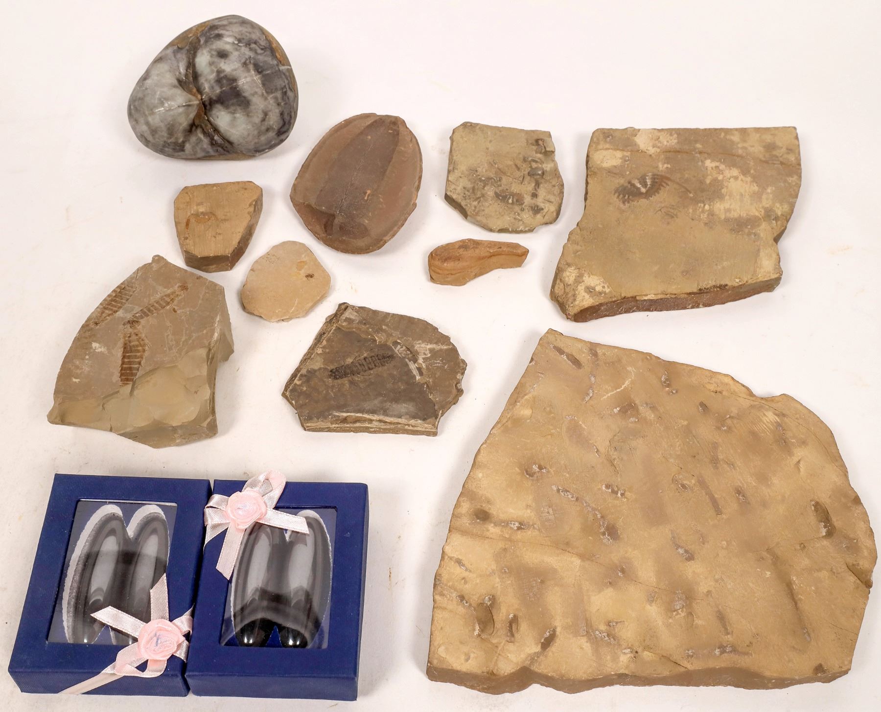 Lot of 12. One bivalve, two boxes of Magnitite, fossilized insects largest 7x6x2Ó China Chunlin Zhu Collection
