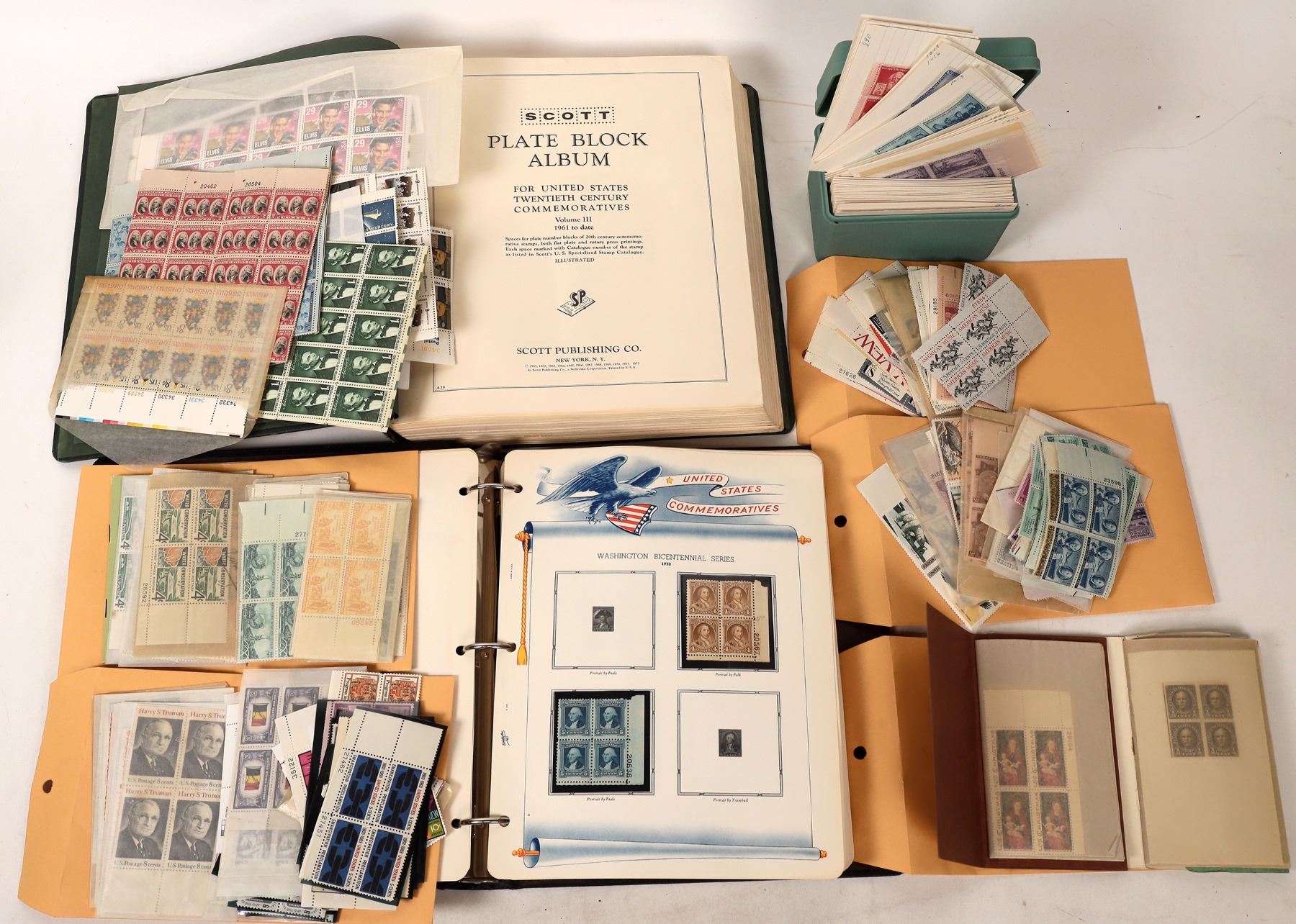 A major US plate block collection of perhaps 400+ plate blocks, c. 1920-95, with some in album. A wide selection including partial sheets with plate corners present. Includes an unused plate block collecting book.
