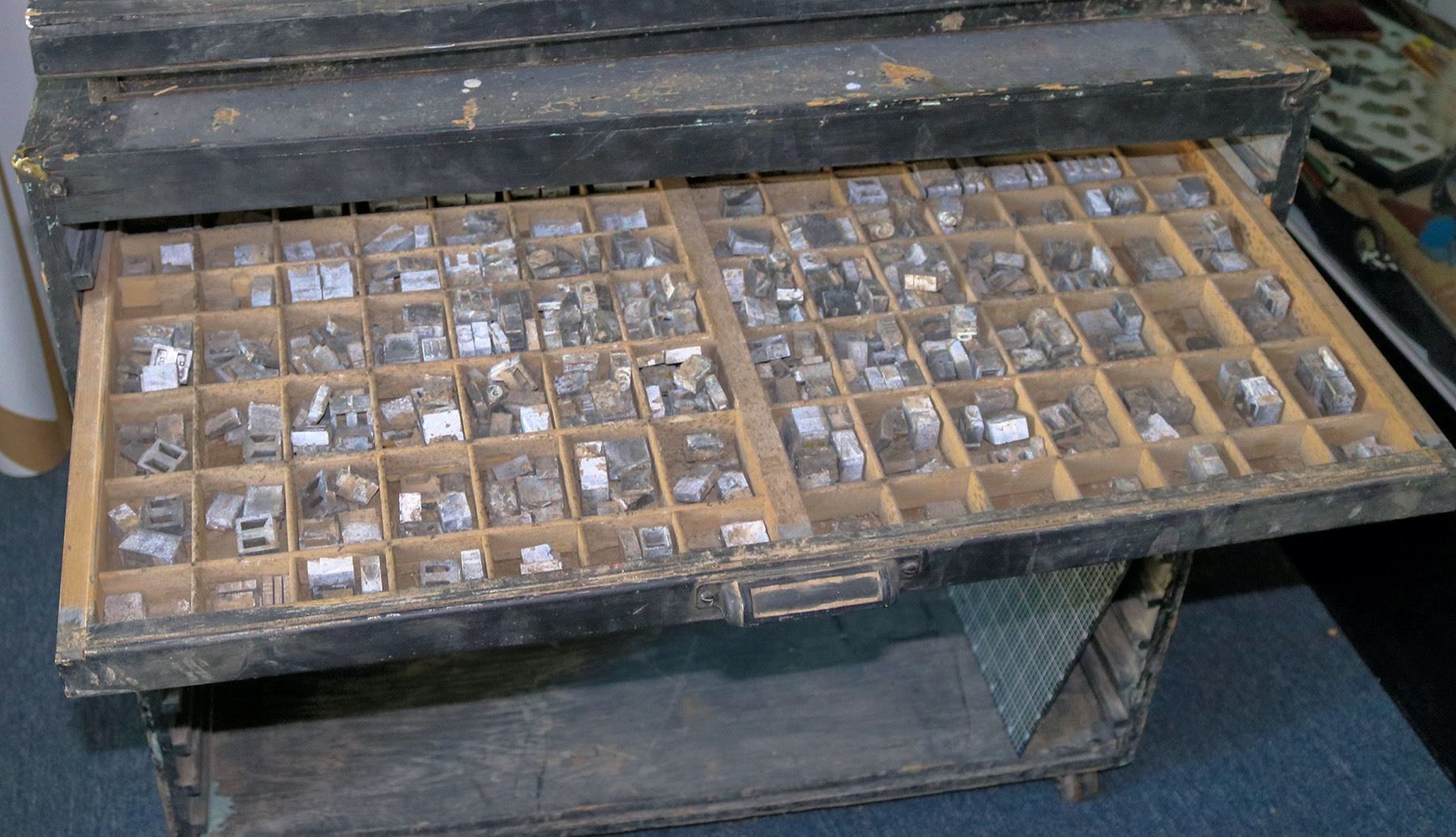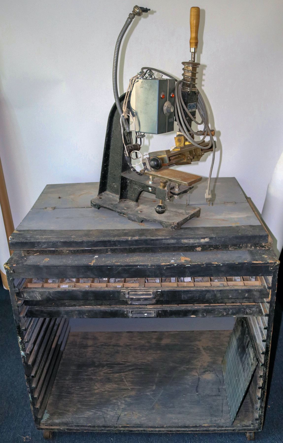 Now you can amuse your friends and neighbors by printing your own newspaper headlines. This is an SOS Photo Cine Optics press and it comes complete with drawers full of letters. This is one that spent some time in nearby Virginia City, Nevada and was usually quite popular with tourists who wanted a souvenir that was more creative than a snow globe or refrigerator magnet. This is one of the more unusual items we've offered the public but, it might be just the thing for a small business to print its own ad copy.