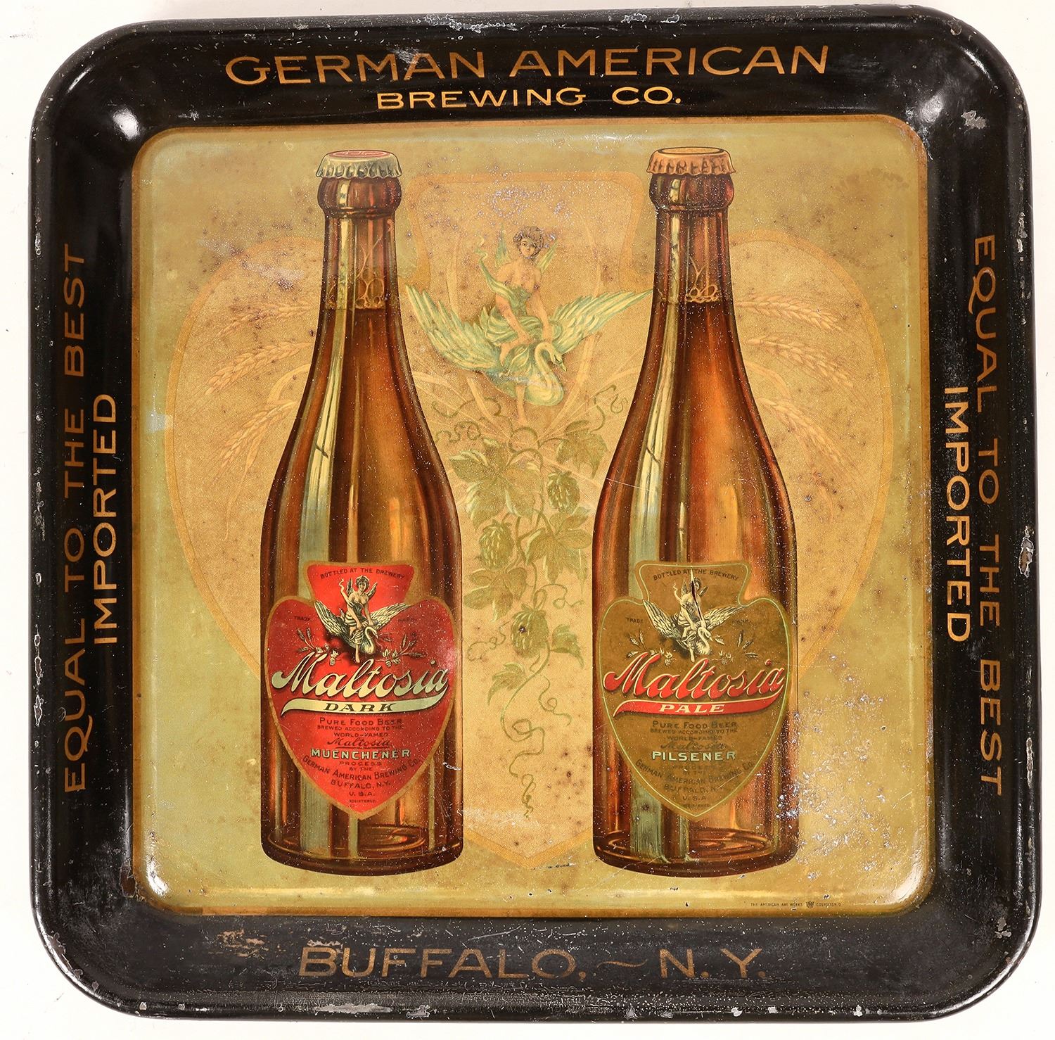 Original square Maltosia beer tray, Dark and Pale. 13.25x13.25". Wear, mostly on lip. Buffalo New York