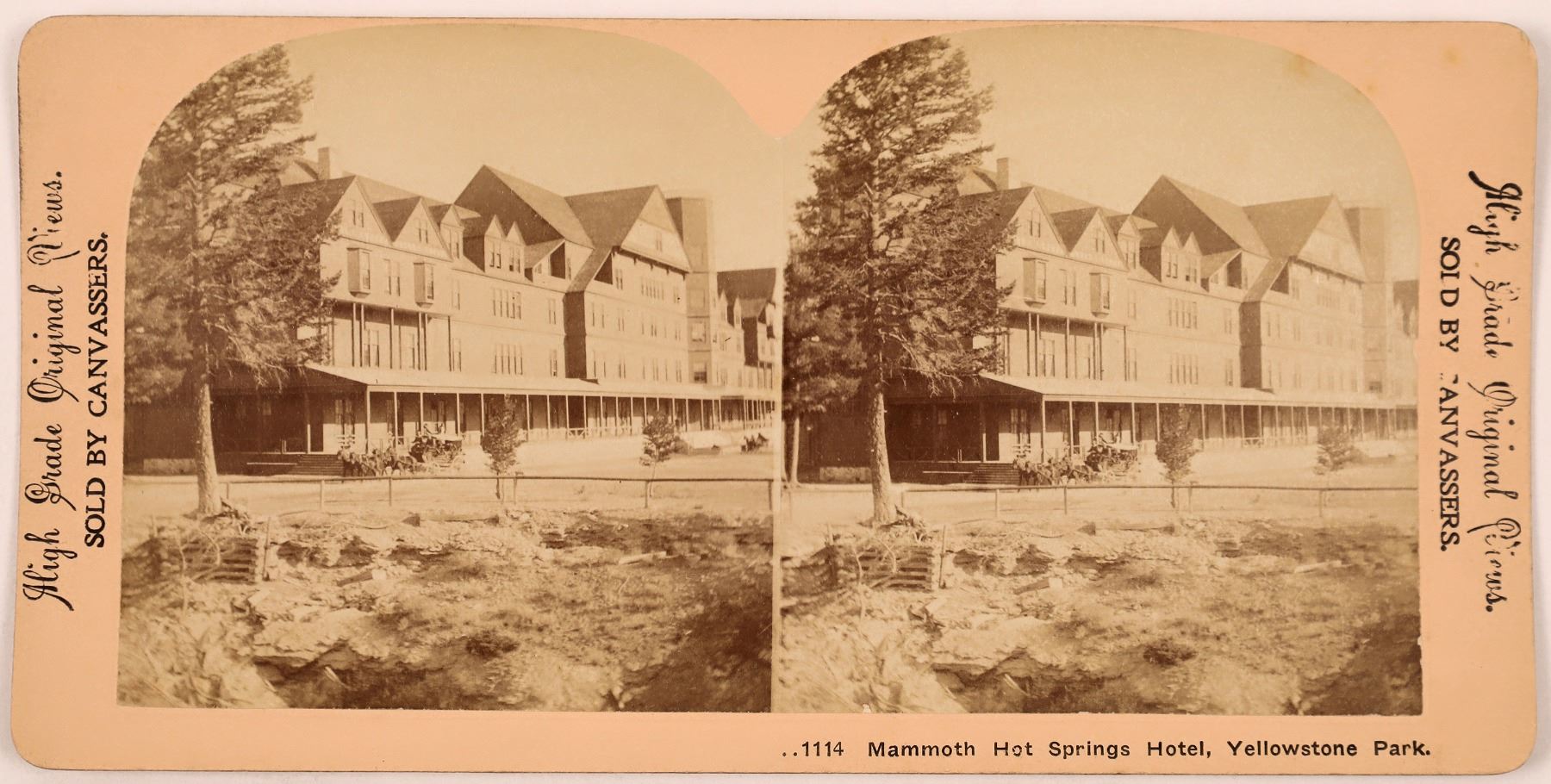 Nice stereoview of the hotel, circa 1900. Shows a horse team out front. Sold by Canvassers printed on the side. Good condition. View closeup for more.