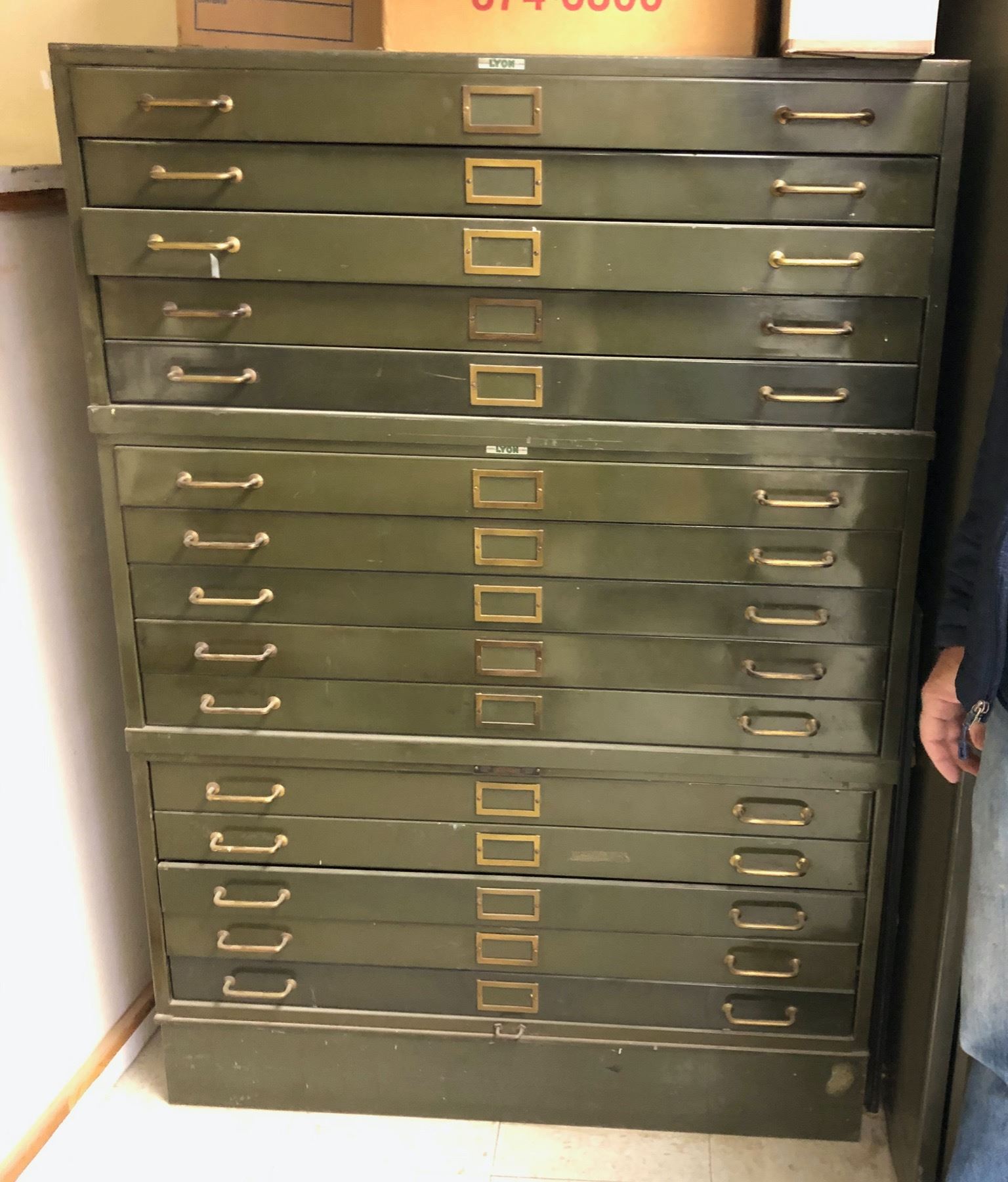 triple stack green flat map file cabinet, 15 drawer. about 5 x 3 x 3' very good condition (F.O.B. Fish Lake Valley, Nevada)