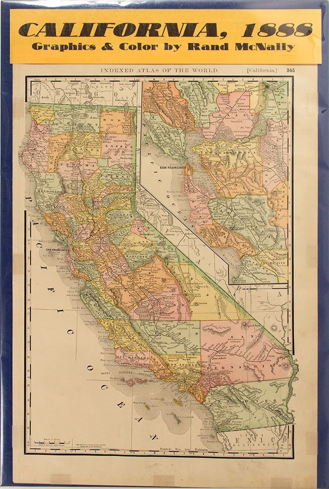 Graphics & Color by Rand McNally. This is p. 345 from Indexed Atlas of the World. No condition issues noted. Vivid color. On Mat Board (not adhered) with plastic covers. If mats are shipped then additional shipping may apply. 14.5" x 21.25". (Potter Collection) HWAC# 59351 Date: 1888 Location: California