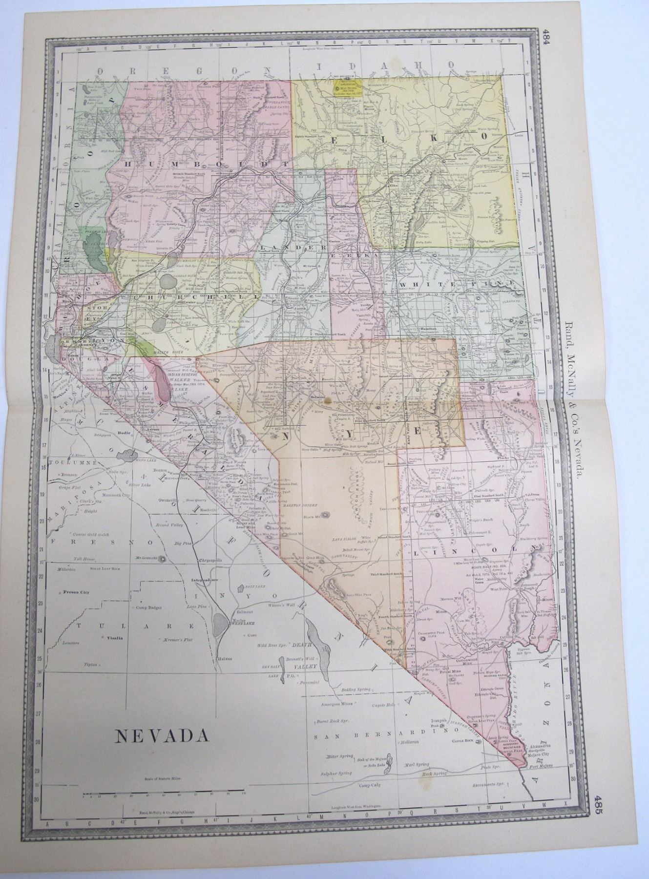 Double truck Rand McNally map of Nevada pp484-485. Multicolor. 14.5" x 21.