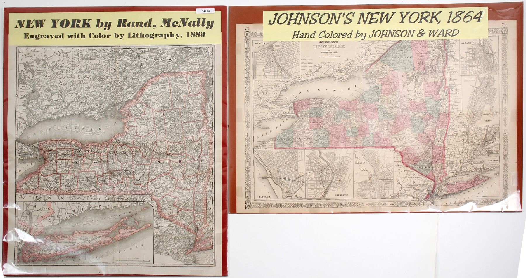 2 maps of New York, 1864 & 1863. New York by Rand,McNally, engraved with color by lithography 20.5" x 23"; New York, 1864, hand colored by Johnson & Ward, double truck, 26.5" x 18.5".Mounted on mat board. If mats are shipped then additional shipping may apply. Date: Location: New York HWAC# 64214