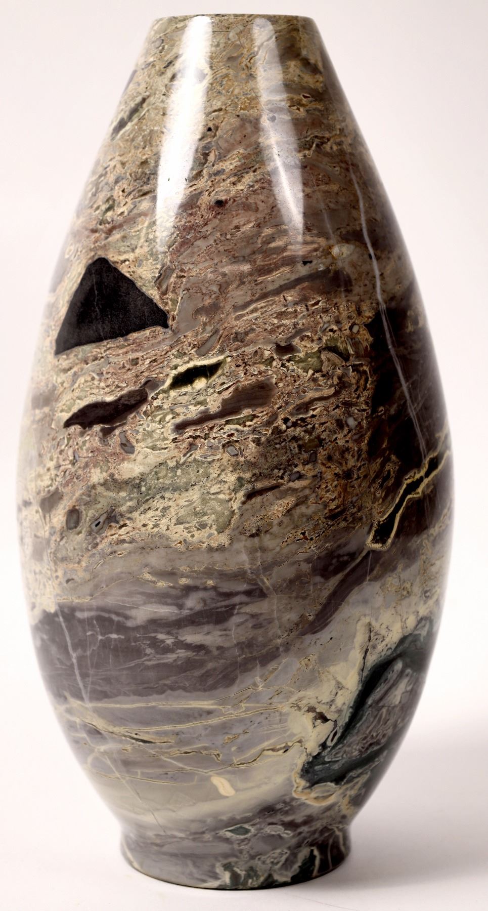 13"x 6 " marble vase with colors of cream, grey, beige, mauve, green. China Chunlin Zhu Collection