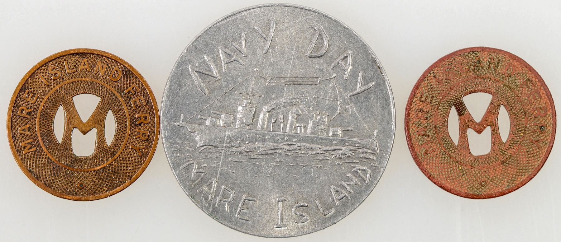 3 Mare Island tokens. 2x Mare Island Ferry. Navy Day 1934. Mare Island California