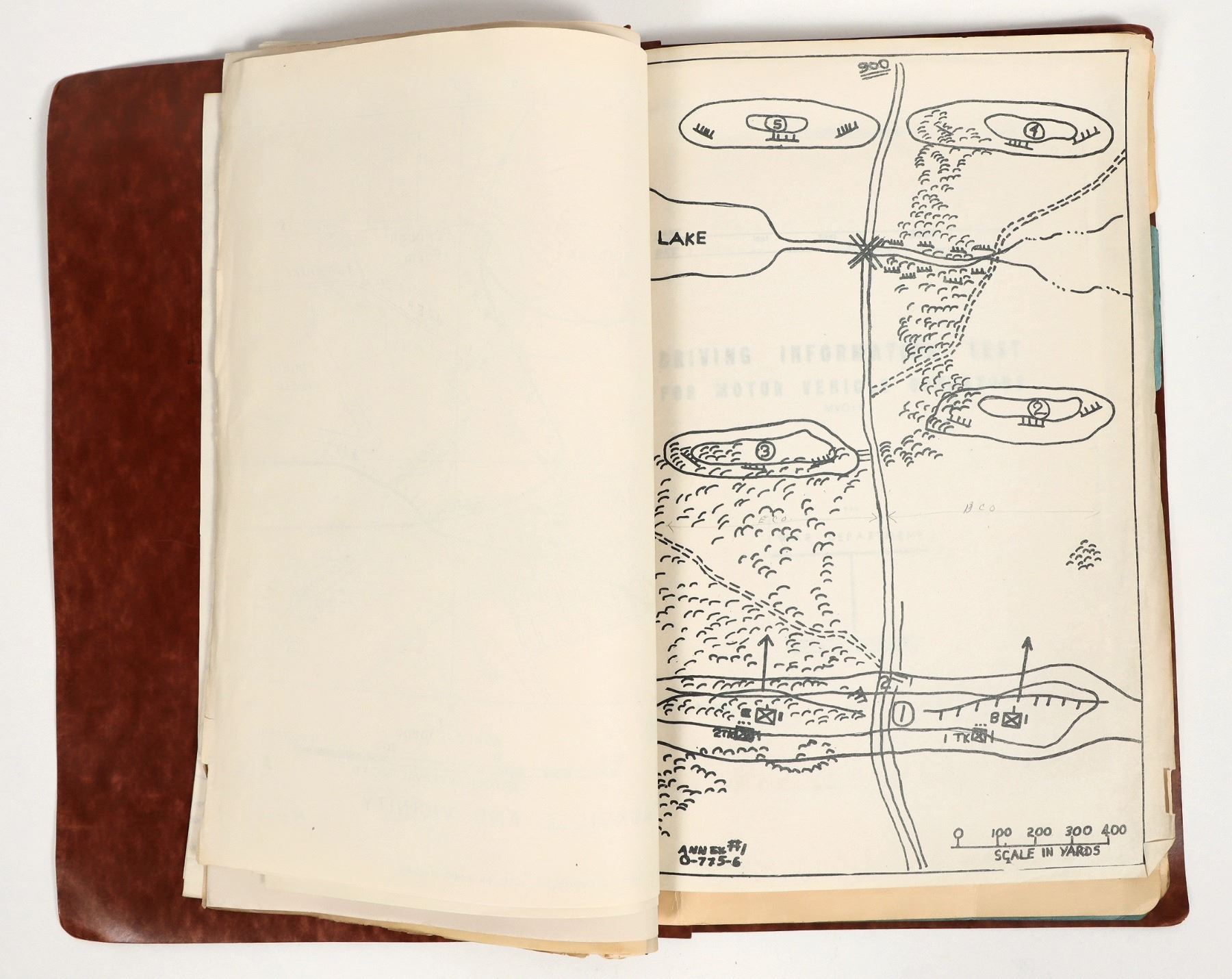 This collection of manuals is from John Thomas of the US Marine Corp dated 1952. The information includes proper uniform dress codes, a driving test, and proper procedures for loading and unloading naval vessels. A personal scrapbook with about 20 pages. A graduating class photo dated 1954 San Diego.