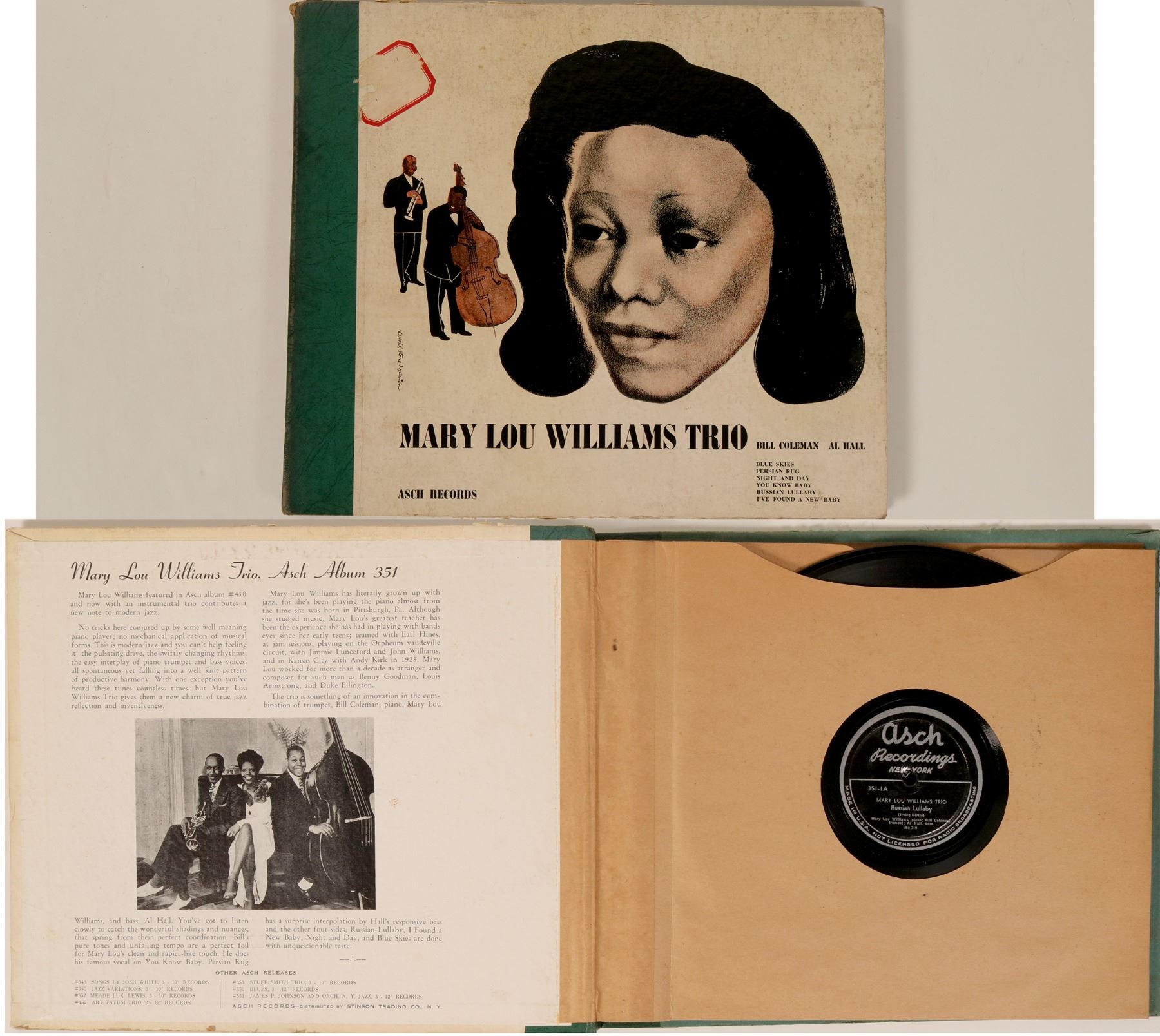 Asch Records #351, three record set of Mary Lou Williams, piano; Bill Coleman, trumpet; Al Hall, bass. Songs include "Blue Skies," "Night and Day," "I've Found a New Baby." Mary Lou Williams has been acclaimed as one of the most talented women in jazz.
