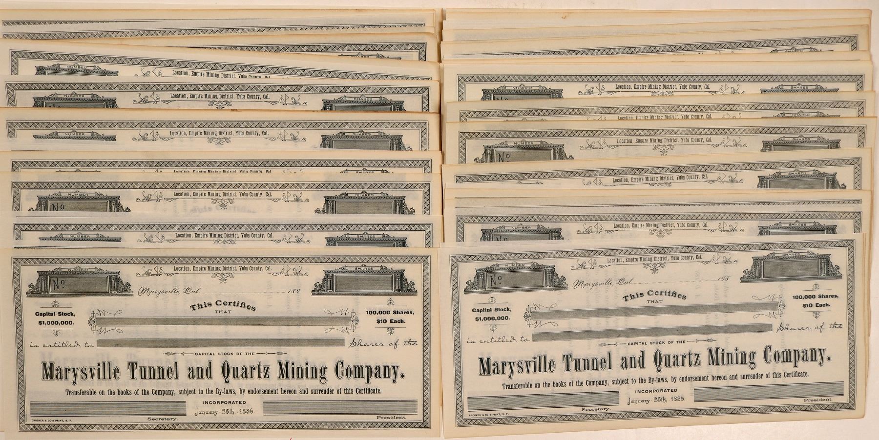 Approx 50 unissued stocks 1880's Ken Prag Collection