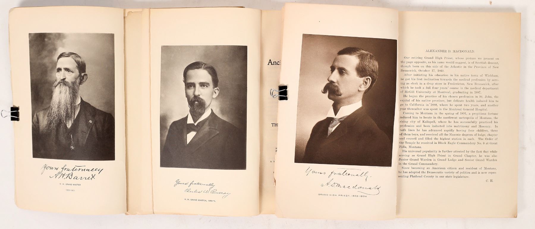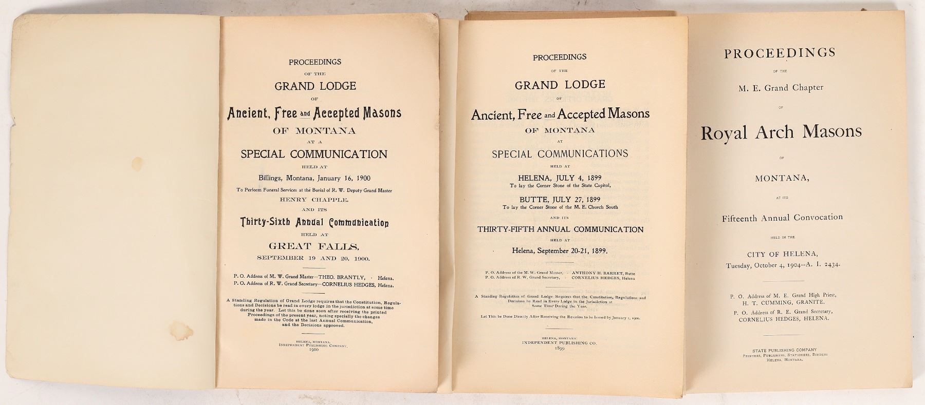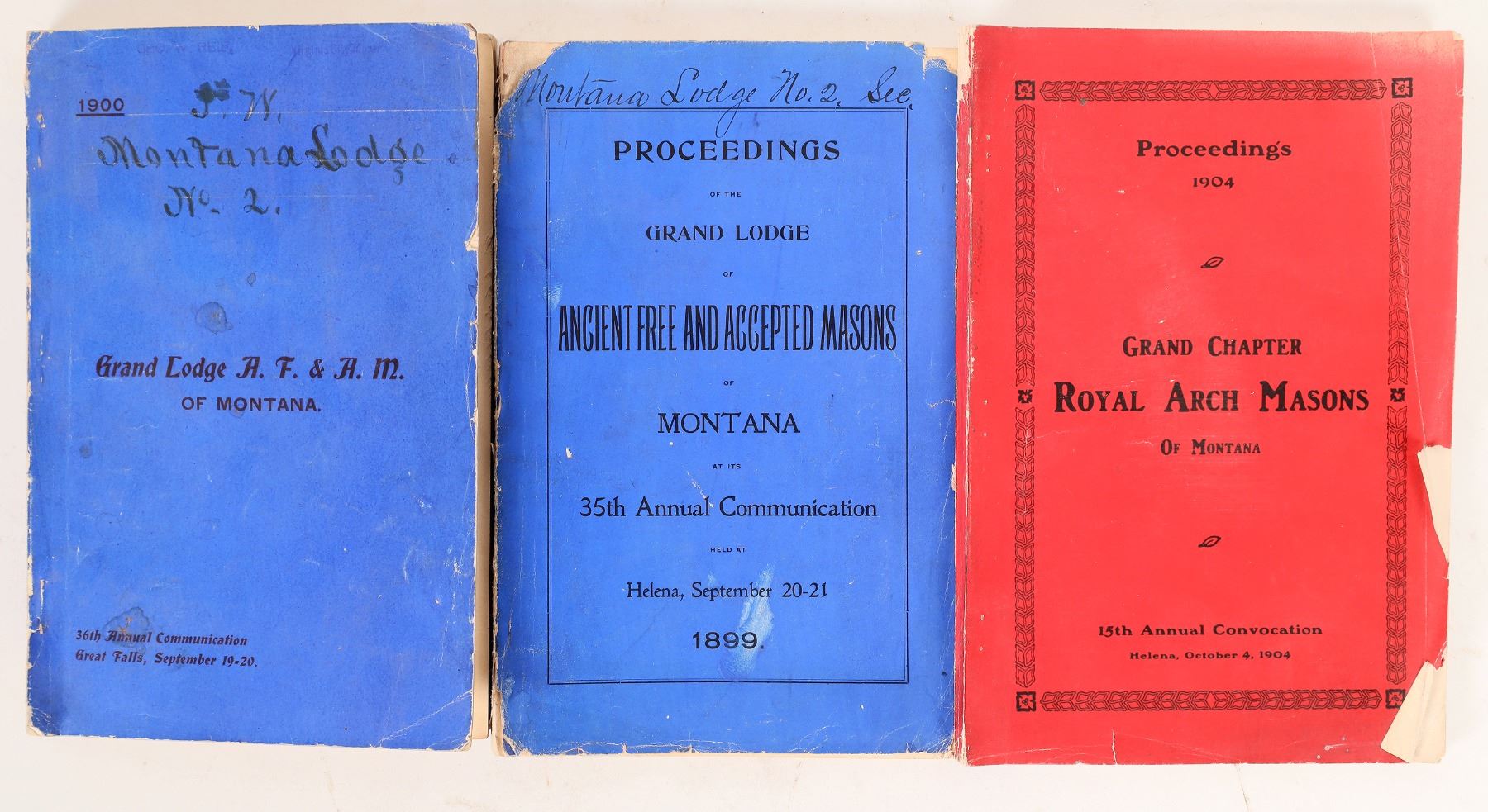 Masonic books from Montana dated 1899-1904 (3). The titles are Grand Chapter Royal Arch Masons, Proceedings of the Grand Lodge Ancient Free and Accepted Masons, and Grand Lodge AF&AM of Montana. All are in decent condition. Please see photos for more details. Montana Helena 1899
