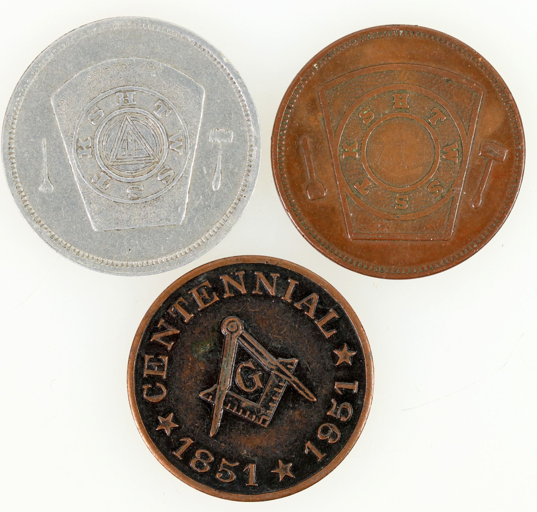Three Masonic pennies: 1) 1861 Canton Ohio; 2) 1901 Miami Florida; 3) 1951 Auburn, California.