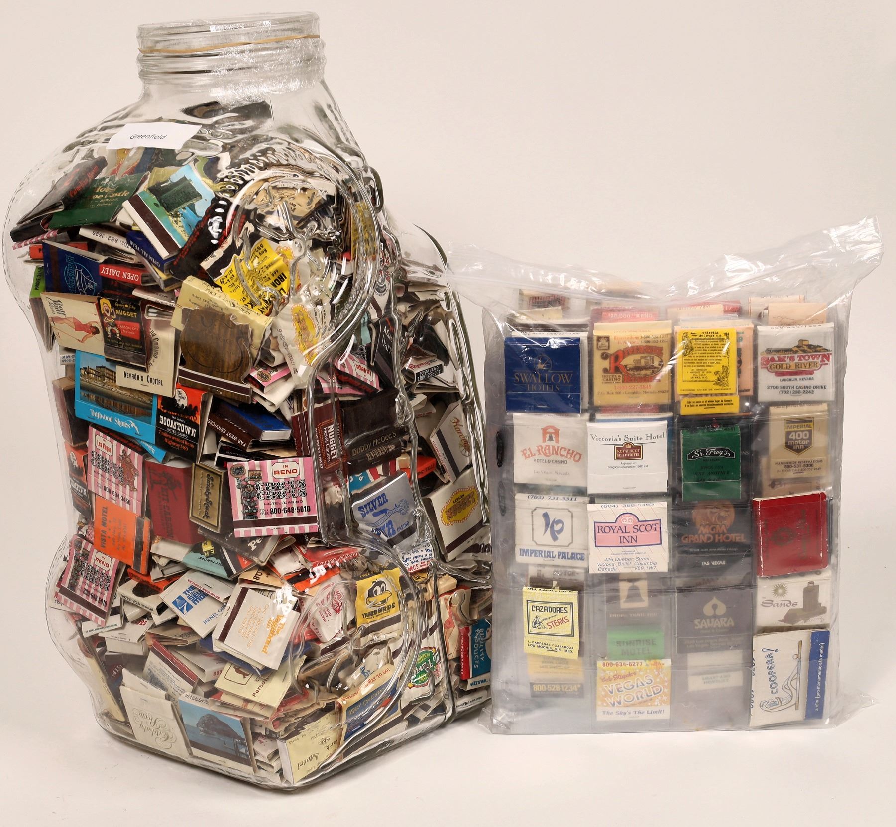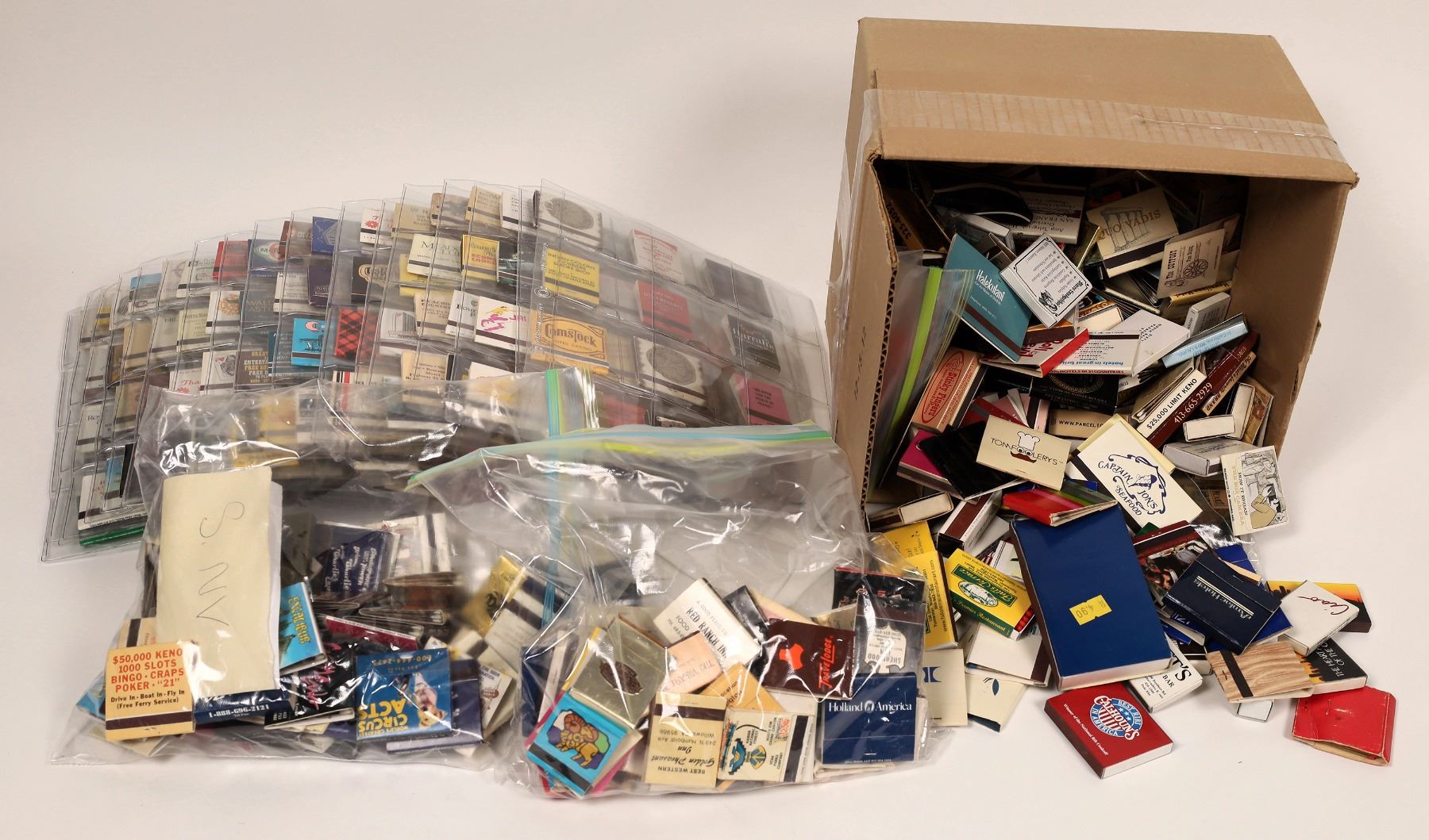 Very large collection of matchbooks. 2 Cubic feet in plastic presentation pages and loose. Probably half or more are from Nevada circa 1960s-80s. Others are from around the world. Interesting collection.