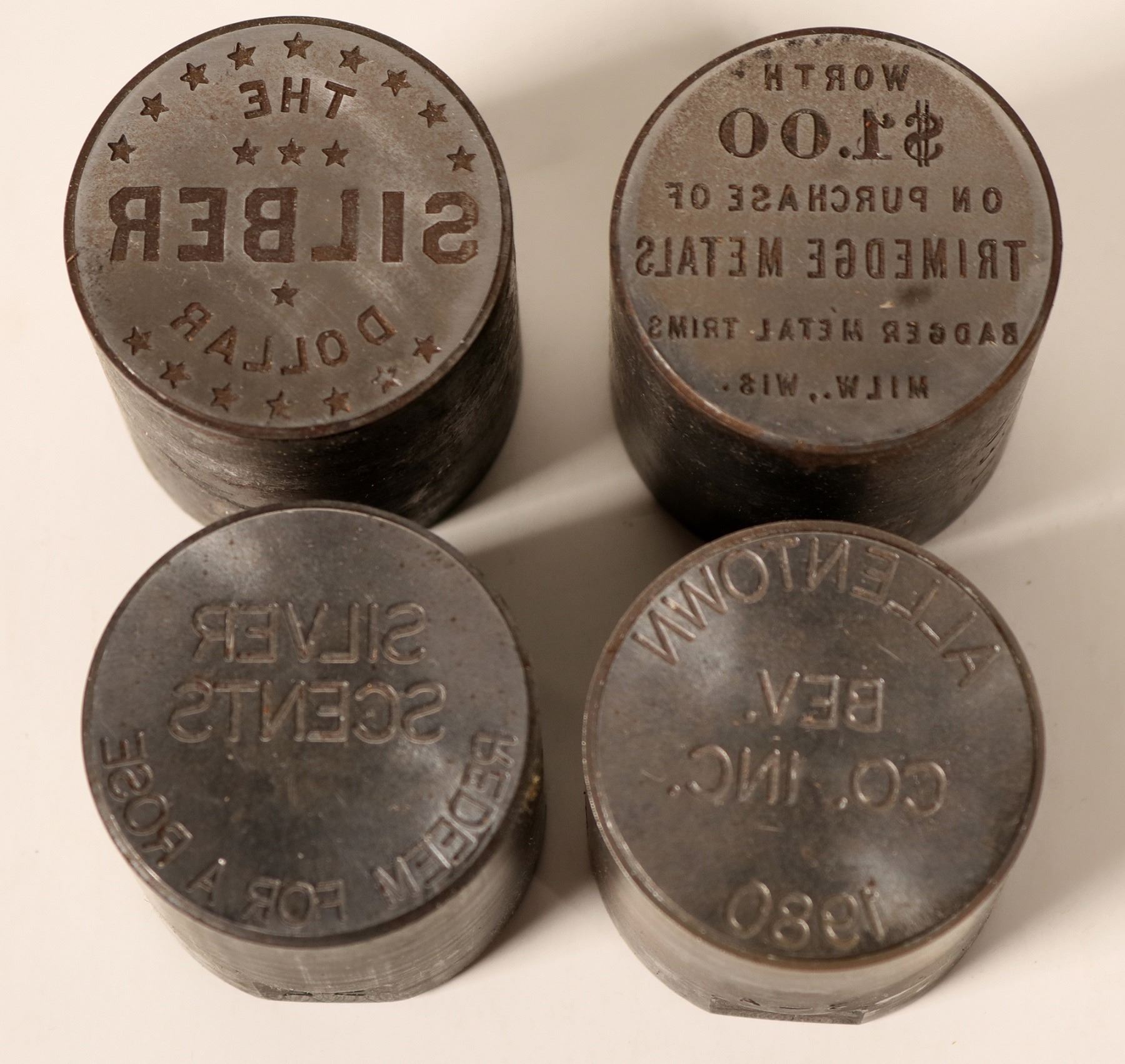 Two matched pair dies From the Northwest Territorial Mint Historical Die Collection. dollar sized. In the thousands of dies in the collection, there were only two or three matched pairs.
